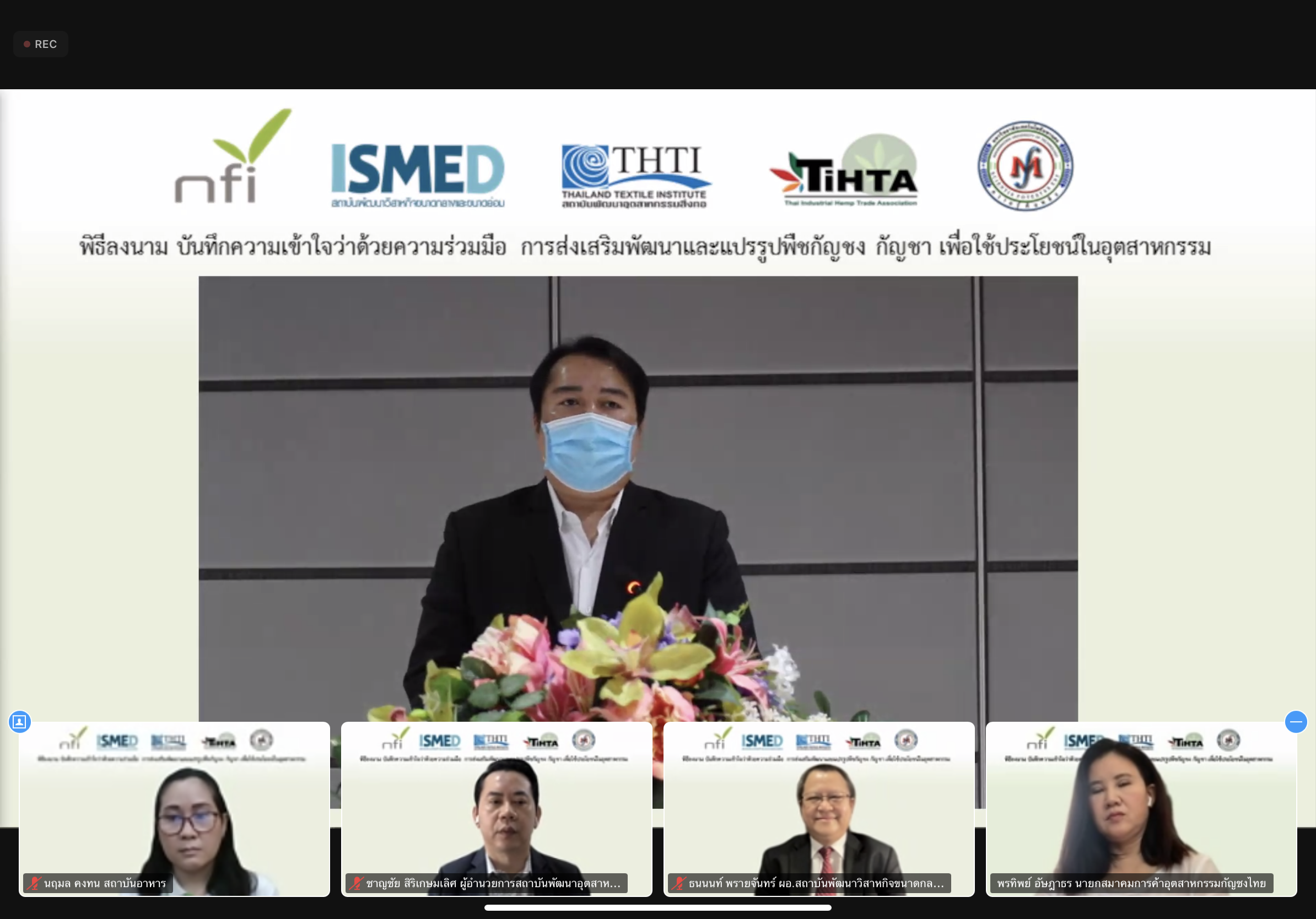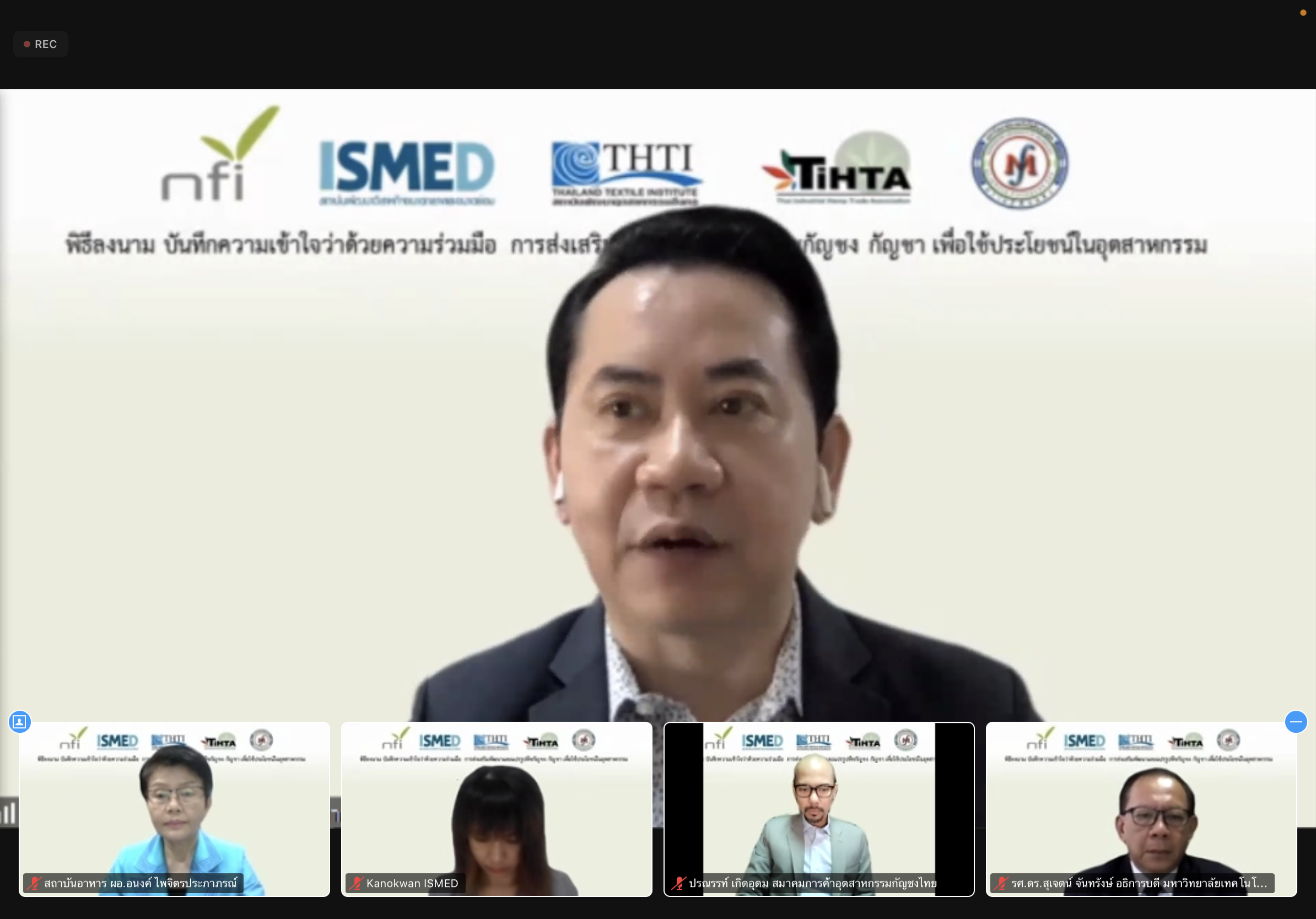 27 ส.ค.64 ดร.ชาญชัย สิริเกษมเลิศ ผู้อำนวยการสถาบันพัฒนาอุตสาหกรรมสิ่งทอ ลงนามบันทึกความร่วมมือ(MOU) กับ 5 หน่วยเพื่อร่วมกันพัฒนางานวิจัยงานแปรรูปพืช กัญชง กัญชาเพื่อใช้ประโยชน์ในอุตสาหกรรม ตามกรอบที่กฎหมายกำหนด ภายใต้การสนับสนุนของกระทรวงอุตสาหกรรม ผ่านระบบ Zoom Cloud Meeting โดยการลงนามครั้งนี้ประกอบไปด้วย