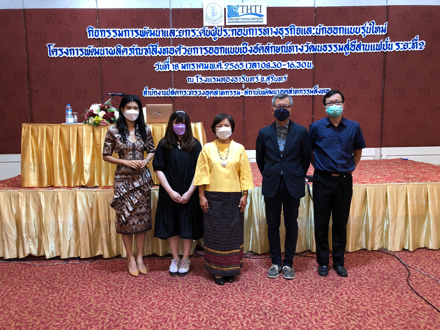 18 ม.ค.65 นางอิฐสราชัย ลำพาอุตสาหกรรมจังหวัดสุรินทร์ ให้เกียรติเป็นประธานกล่าวเปิดอบรม กิจกรรมการพัฒนาและยกระดับผู้ประกอบการ ทางธุรกิจและนักออกแบบรุ่นใหม่ โดยมีนายวิวัฒน์ หิรัญพฤกษ์ ผู้เชี่ยวชาญด้านการพัฒนาอุตสาหกรรมสิ่งทอและแฟชั่นแบบยั่งยืน ที่ปรึกษาโครงการ สถาบันพัฒนาอุตสาหกรรมสิ่งทอ กล่าวสรุปภาพรวมการดำเนินโครงการ ณ ห้องรัตนสุวรรณ โรงแรมทองธารินทร์ จังหวัดสุรินทร์