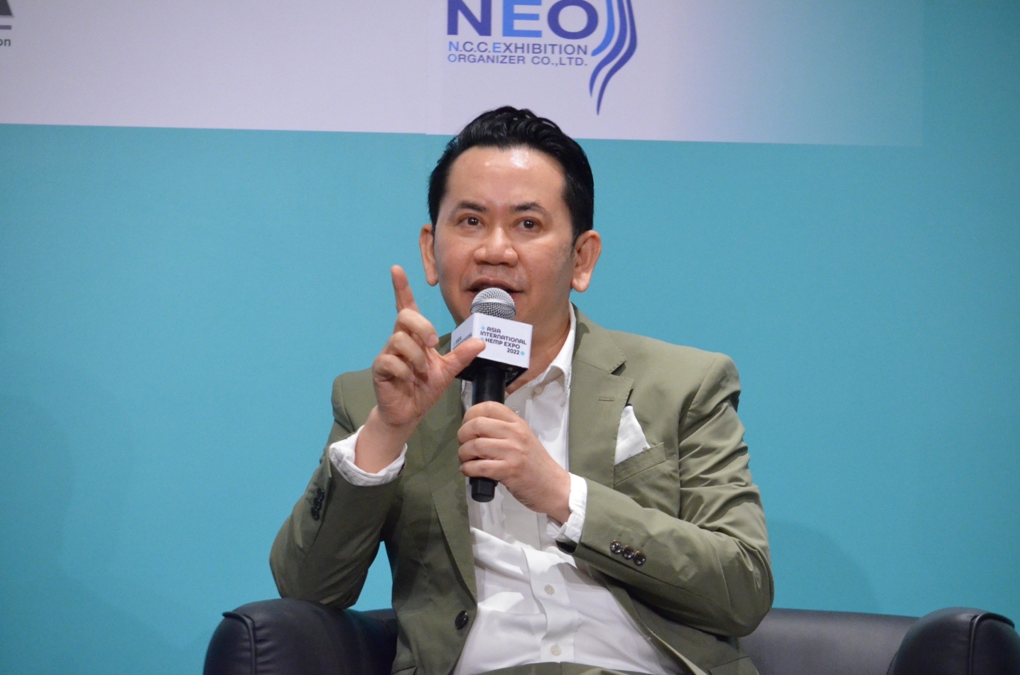นอกจากนั้นยังมีสมาคมอื่นๆ อีกมากมายที่เราร่วมงานกันและยังไม่ได้กล่าวถึง ต้องขอขอบคุณทุกภาคส่วนที่ร่วมผนึกกำลังกันและวันนี้ถือเป็นโอกาสดีมาก ที่ได้ร่วมลงนามความร่วมมือย่างเป็นทาง และทางสมาคมฯ ก็ยินดีต้อนรับทุกๆความร่วมมือที่จะเกิดขึ้นในอนาคต เพื่อร่วมกันขับเคลื่อนอุตสาหกรรมกัญชงให้ครบครันในทุกมิติ สู่เศรษฐกิจที่สร้างสรรค์และยั่งยืน และที่สำคัญวันนี้เรามีผู้แทนพันธมิตรจากต่างประเทศมาร่วมเป็นสักขีพยานด้วยคือ มร.ทาคาชิ โอคานูมะ ซึ่งเป็นผู้ร่วมก่อตั้งและผู้แทนจาก International Environmental Hemp Forum ที่เข้ามาทำงานร่วมกันกับสมาคมฯ และสมาคมฯได้สร้างเครือข่ายทางธุรกิจกว่า 25 ประเทศแล้วในขณะนี้ที่สนใจเข้ามาเจรจาและสร้างโอกาสในอุตสาหกรรมกัญชงกับประเทศไทย ความต้องการในตลาดโลกที่มีแนวโน้มเปิดกว้าง ทำให้กัญชงสามารถสร้างมูลค่าเพิ่มทางเศรษฐกิจได้อย่างมหาศาล และคาดว่าตลาดกัญชงสามารถสร้างรายได้กว่า 2 หมื่นล้านบาท ภายใน 5 ปี