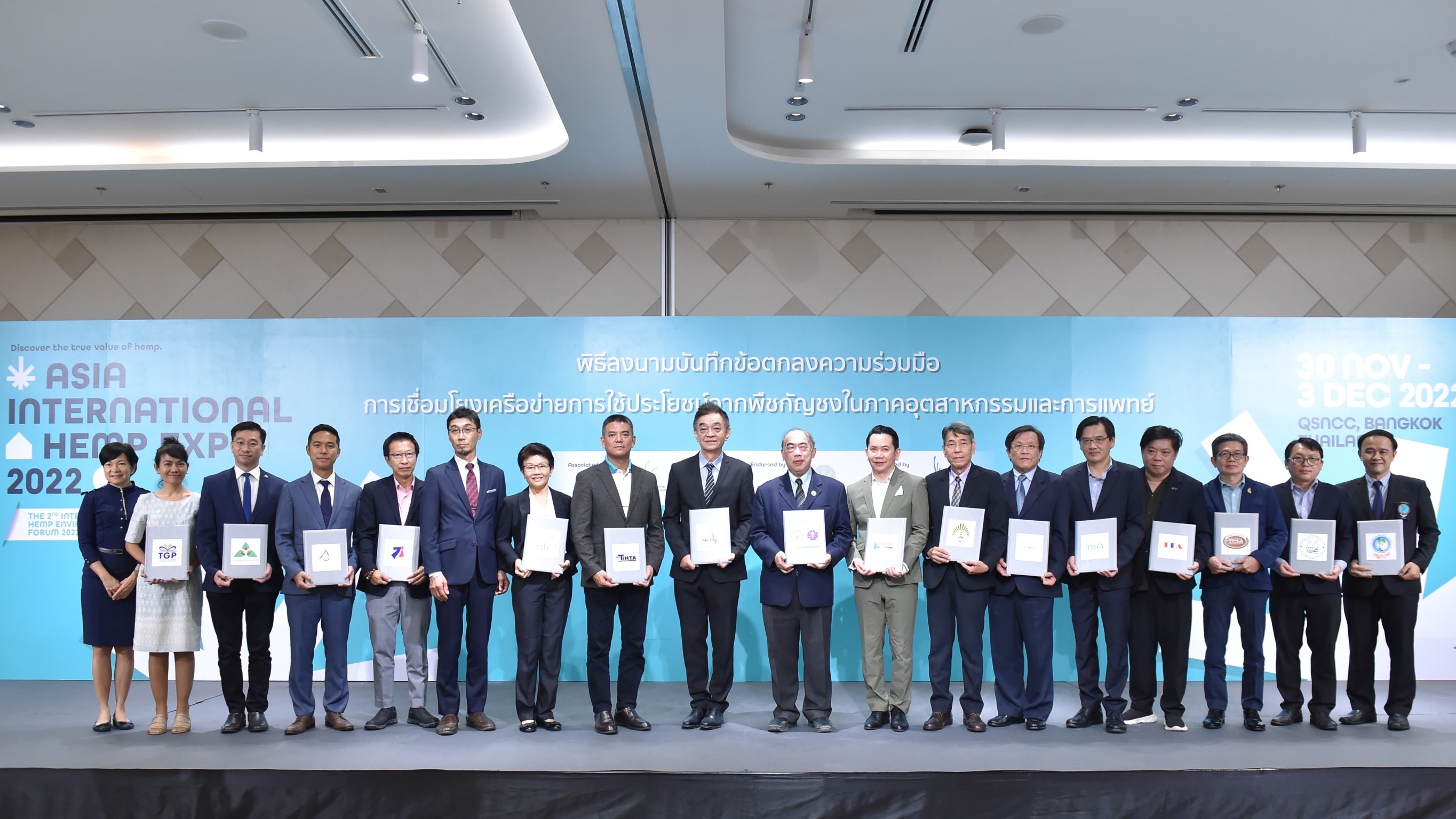 สมาคมการค้าอุตสาหกรรมกัญชงไทย (Thai Industrial Hemp Trade Association: TiHTA) รุกคืบในการผลักดันพืชกัญชงสู่พืชเศรษฐกิจและอุตสาหกรรม และภารกิจในการปั้นไทยสู่ฮับอุตสาหกรรมกัญชงแห่งเอเชีย ผนึกกำลัง หน่วยงานรัฐ สมาคมอุตสาหกรรมการผลิต และเอกชน ลงนามบันทึกข้อตกลงความร่วมมือ (MoU) 15 ฉบับ เชื่อมโยงเครือข่ายการใช้ประโยชน์จากพืชกัญชงในภาคอุตสาหกรรมและการแพทย์ และร่วมฉลองนานาชาติให้ความสนใจ และขานรับไทยเป็นเจ้าภาพการจัดงาน “Asia International Hemp Expo 2022” งานแสดงสินค้า การจับคู่ทางธุรกิจ และการประชุมนานาชาติที่ยิ่งใหญ่ที่สุดในเอเชีย โดยได้รับความร่วมมือจาก 25 ประเทศใน 5 ทวีปทั่วโลก ณ ศูนย์การประชุมแห่งชาติสิริกิติ์