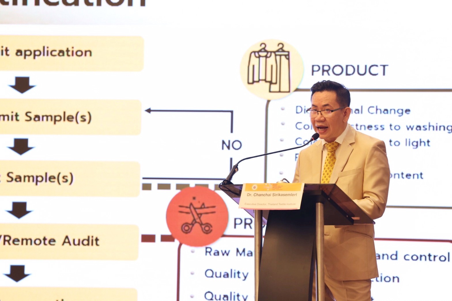 22 ก.ย.65 ดร.ชาญชัย สิริเกษมเลิศ ผู้อำนวยการสถาบันพัฒนาอุตสาหกรรมสิ่งทอ ร่วมงาน The 2022 Taiwan-Thailand Industrial Collaboration Summit พร้อมร่วมบรรยายใน หัวข้อ การพัฒนาสิ่งทอของไทยในยุคหลังโรคระบาด และการส่งเสริม Thailand Textiles Tag: เครื่องหมายรับรองคุณภาพผลิตภัณฑ์สิ่งทอ พร้อมนำเสนอ กรณีศึกษา CHUN WOVEN: กระเป๋าและเฟอร์นิเจอร์จากเชือกผูกรองเท้า (Certified by Thailand Textiles Tag)