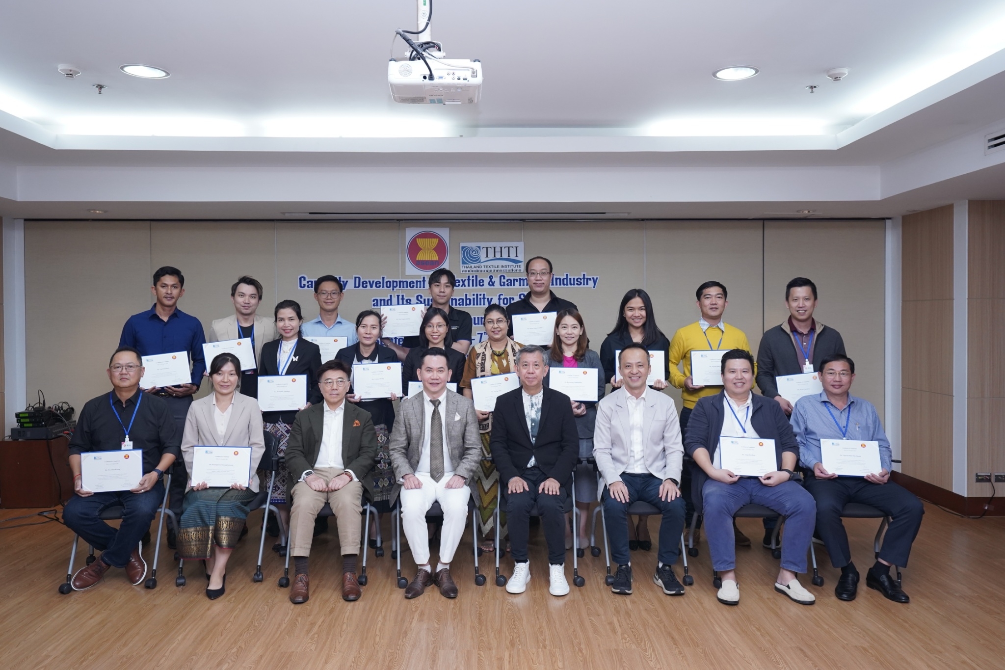 สถาบันพัฒนาอุตสาหกรรมสิ่งทอ ผนึกความร่วมมือ กองทุน AHKFTA ภายใต้ความตกลงการค้าเสรี ASEAN-Hong Kong, China Free Trade Agreement - ECOTECH Work Programme จัดอบรมเสริมแกร่งผู้ประกอบการ SME ของกลุ่มประเทศ CLMV คือ กัมพูชา ลาว พม่า และเวียดนาม ในอุตสาหกรรมสิ่งทอและเครื่องนุ่งห่มระดับสากล เพื่อเพิ่มขีดความสามารถทางการแข่งขันอุตสาหกรรมสิ่งทอโลก