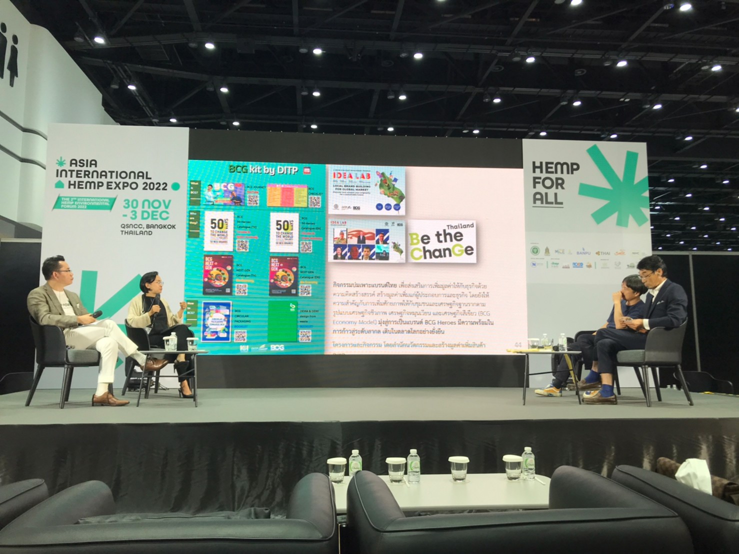 1 ธ.ค.65 ดร.ชาญชัย สิริเกษมเลิศ ผู้อำนวยการสถาบันพัฒนาอุตสาหกรรมสิ่งทอ ร่วมเป็นวิทยากรพร้อมบรรยายพิเศษ Hemp on the runway: Textile, Fashion and Cultural ในงาน ASIA INTERNATIONAL HEMP EXPO 2022 ณ ศูนย์การประชุมแห่งชาติสิริกิติ์