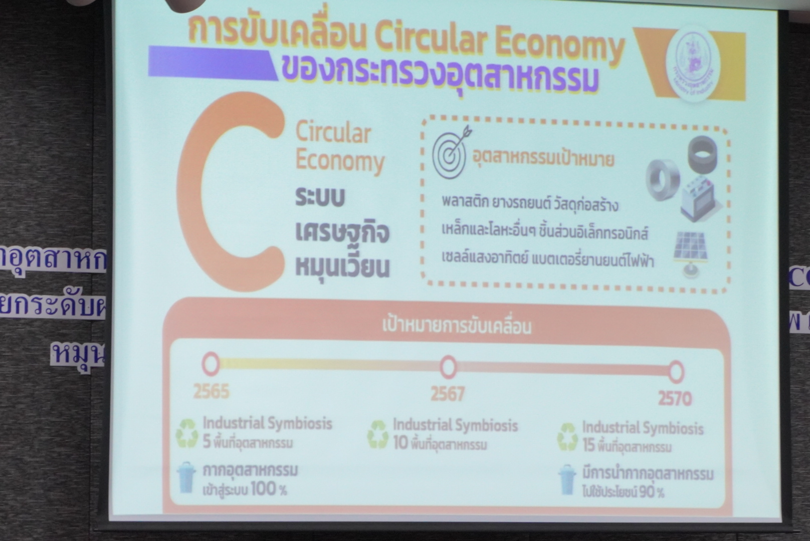 สศอ.ร่วมกับสถาบันฯสิ่งทอ กระทรวงอุตสาหกรรม จัดกิจกรรมอบรม พัฒนาอุตสาหกรรมอย่างยั่งยืนด้วยแนวคิดเศรษฐกิจหมุนเวียน (Circular Economy) โดยมีผู้แทน สำนักงานเศรษฐกิจอุตสาหกรรม (สศอ.) พร้อมด้วย คุณสุดา ยังให้ผล ผู้อำนวยการฝ่ายพัฒนาอุตสาหกรรม สถาบันพัฒนาอุตสาหกรรมสิ่งทอ ผู้ทรงคุณวุฒิด้านเศรษฐกิจหมุนเวียน หน่วยงานภาครัฐ ภาคเอกชน เข้าร่วมอย่างคึกคัก ณ โรงแรมเซ็นจูรี่