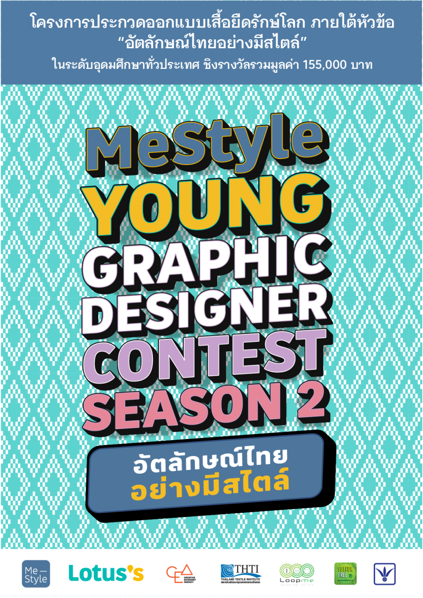 ครงการ MeStyle Young Graphic Designer Contest Season 2 ประกวดออกแบบกราฟฟิกเสื้อยืดรักษ์โลก ลายอัตลักษณ์ไทย ๕ ภาค ในระดับอุดมศึกษาทั่วประเทศ ชิงเงินรางวัลรวมมูลค่า 155,000 บาท ในหัวข้อ อัตลักษณ์ไทย อย่างมีสไตล์ โดยผลงานที่ชนะเลิศจะได้รับการพิมพ์บนเสื้อยืดเพื่อผลิตและจำหน่ายในห้างสรรพสินค้าโลตัสทุกสาขาทั่วประเทศ และแพลตฟอร์มออนไลน์ Lotus’s SMART App