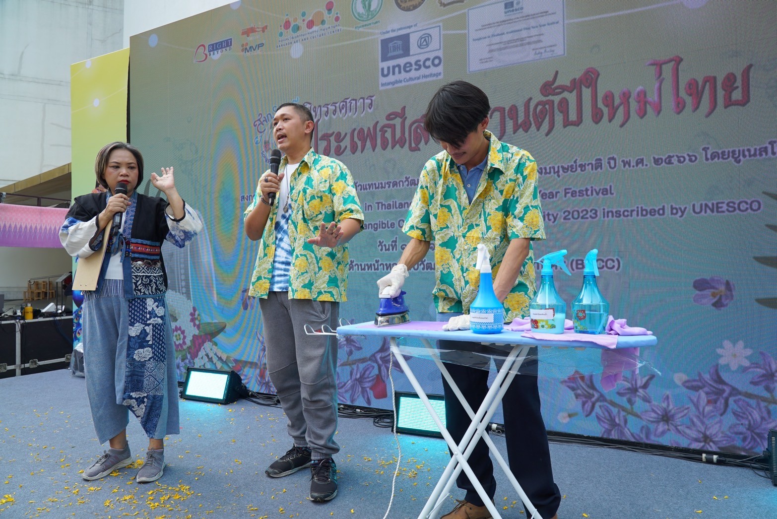 2.สาธิตให้ความรู้การพัฒนาผลิตภัณฑ์ที่มีฟังก์ชั่นพิเศษ อาทิ ผ้ากลิ่นหอม สะท้อนน้ำ สร้างโอกาสทางการตลาดในช่วงเทศกาลสงกรานต์