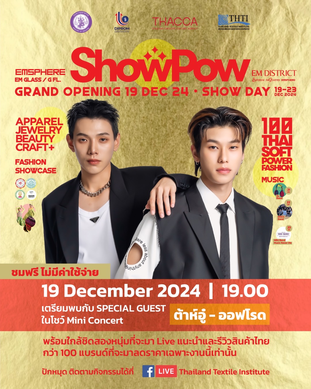 กรมส่งเสริมอุตสาหกรรม (DIPROM) หรือ ดีพร้อม กระทรวงอุตสาหกรรม ชวนทุกคนมาร่วมงาน Show Pow ภายใต้โครงการส่งเสริมภาพลักษณ์สินค้าแฟชั่นไทยสู่สากล