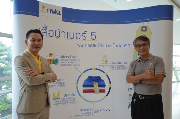 ในขณะที่ นายจิระศักดิ์ มัณฑางกูร ผู้อำนวยการฝ่ายบริหารด้านการใช้ไฟฟ้าและกิจการเพื่อสังคม กฟผ. กล่าวถึงโครงการเสื้อเบอร์ 5 ว่า กฟผ. ได้ร่วมกับ สสท. ต่อยอดเสื้อผ้าเบอร์ 5 จากเสื้อคูลโหมดโดยนำคุณสมบัติ 3 ข้อ ได้แก่ ความปลอดภัย คุณภาพและความคงทน และการลดความร้อน มาผนวกเพิ่มคุณสมบัติพิเศษด้านความเรียบ ส่งผลให้เนื้อผ้าที่มีคุณสมบัติระบายอากาศได้ดี สามารถใช้งานในห้องปรับอากาศที่มีคุณภูมิมากกว่า 25 องศาเซลเซียส และสามารถคืนตัวหลังการซัก จึงทำให้เย็นสบายขณะสวมใส่ในขณะที่ช่วยประหยัดไฟฟ้าและประหยัดเวลา เนื่องจากไม่ต้องรีดหลังการซัก โดย กฟผ.ได้ขยายผลและเพิ่มทางเลือกในการสวมใส่เสื้อผ้าเบอร์ 5 ผ่านการรณรงค์ให้หน่วยงานต่าง ๆ ตัดเย็บผ้าเบอร์ 5 เป็นเครื่องแบบและใช้งานเสื้อผ้าเบอร์ 5 สำหรับกิจกรรมต่าง ๆ ภายในองค์กร อันเป็นส่วนหนึ่งในการปลูกจิตสำนึกด้านการอนุรักษ์พลังงานและสิ่งแวดล้อม ซึ่งได้รับความร่วมมือจากหน่วยงานพันธมิตรเป็นอย่างดี
