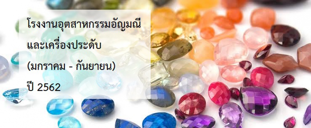 โรงงานอุตสาหกรรมอัญมณีและเครื่องประดับ (สะสม) ณ เดือนมกราคม-กันยายน 2562