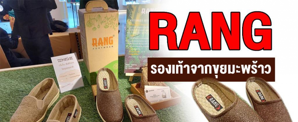 จากขุยมะพร้าวธรรมดาที่เกือบจะหมดประโยชน์ไปแล้ว แต่แบรนด์รองเท้า RANG ที่ผลิตรองเท้ามาแต่ไหนแต่ไร คิดค้นและนำแนวคิดผสมกับเทรนด์การรักษ์โลกในยุคปัจจุบันนำเอาขุยมะพร้าวที่เหลือใช้มาทำให้เกิดประโยชน์โดยการนำมาทำเป็นรองเท้าเพื่อรองรับการสวมใส่ในกลุ่มคนมีอายุ ให้สามมารถมีรองเท้าที่ถนอมเท้าได้เป็นอย่างดี ซึ่งเปิดตัวมาได้ปีกว่า