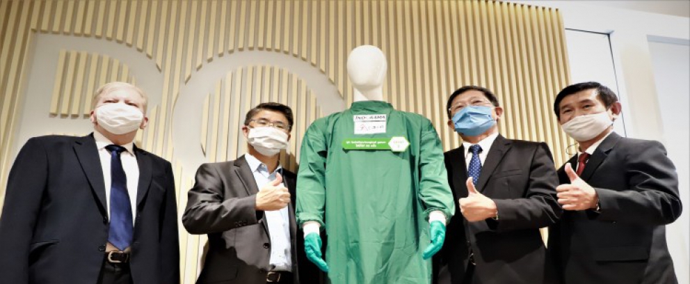 อภ.ร่วมกับเครือข่ายภาครัฐและภาคเอกชน สร้างนวัตกรรมการผลิตชุด PPE จากเส้นใยรีไซเคิลตลอดห่วงโซ่อุปทาน “PPE Innovation Platform นวัตกรรมชุด PPE ฝีมือคนไทย มาตรฐานสากล” ป้องกันเชื้อและการซึมผ่านของน้ำที่มีแรงดัน ที่ระดับ 3 ซักใช้ซ้ำได้มากกว่า 50 ครั้ง