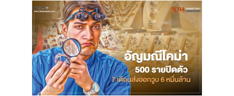 อัญมณีโคม่า 500 รายปิดตัว 7 เดือนส่งออกวูบ 6 หมื่นล้าน