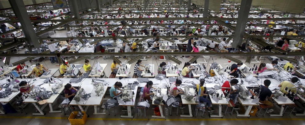 FILE - Laborers work at a garment factory in Bac Giang province, near Hanoi, Oct. 21, 2015. Vietnam's textiles and footwear would gain strongly from the Trans-Pacific Partnership, after exports of $31 billion last year for brands such as