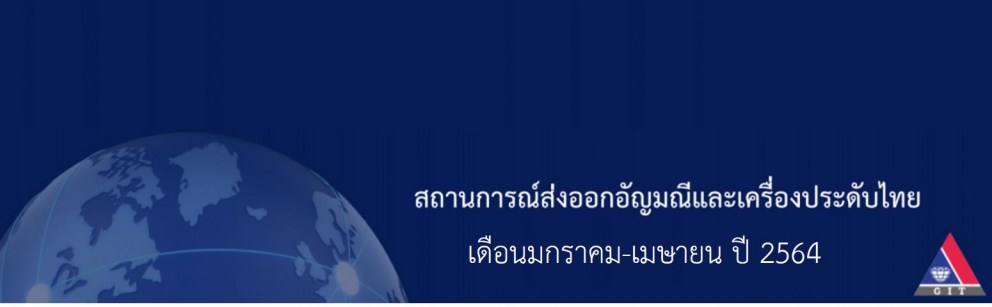 สถานการณ์ส่งออกอัญมณีและเครื่องประดับไทยเดือนมกราคม-เมษายน ปี 2564