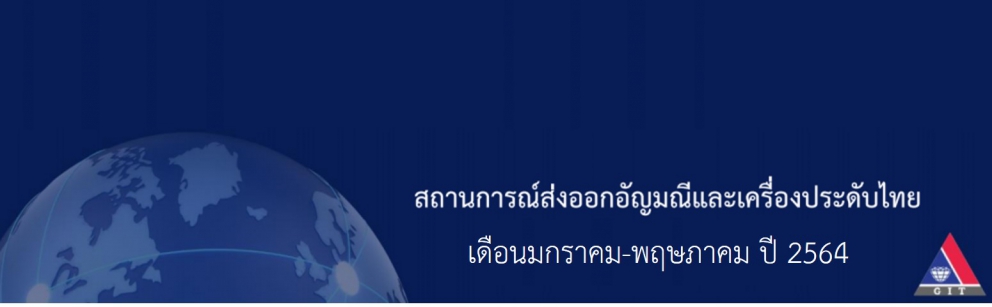 สถานการณ์ส่งออกอัญมณีและเครื่องประดับไทยเดือนมกราคม-พฤษภาคม ปี 2564