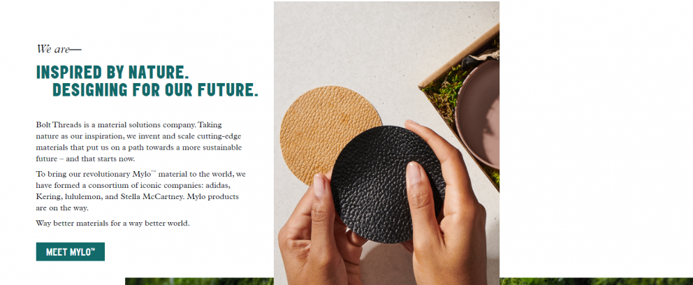 Bolt Threads เป็นผู้นำด้านนวัตกรรมการผลิตวัสดุชีวภาพ จุดเริ่มต้นของการสร้างสรรค์วัสดุทางเลือกนั้น ได้รับแรงบันดาลใจจากธรรมชาติ พร้อมคิดค้นและปรับรูปแบบวัสดุให้เหมาะสม เพื่อนำไปสู่ความยั่งยืนในอนาคต