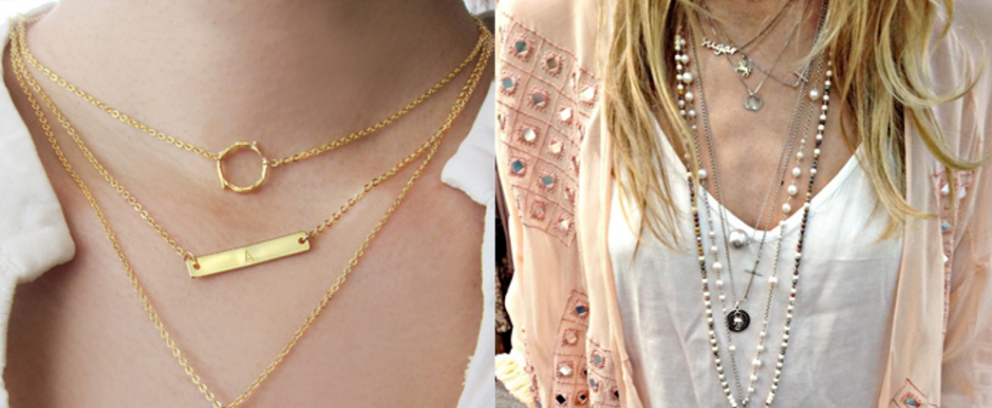 1. Layering ซึ่งไม่ใช่เพียงการใส่สร้อยคอแบบเดียวกันหลายๆ เส้น แต่ยังสามารถใช้ทั้งสร้อยคอที่ทำจากโลหะมีค่าผสมผสานกับสร้อยคอที่มีการประดับด้วยอัญมณี ซึ่งมีแนวทางการสวมใส่ที่สร้างสรรค์เกิดขึ้นหลากหลายที่สามารถพบเห็นได้จากในอินสตาแกรมหรือจากแบรนด์ต่าง ๆ