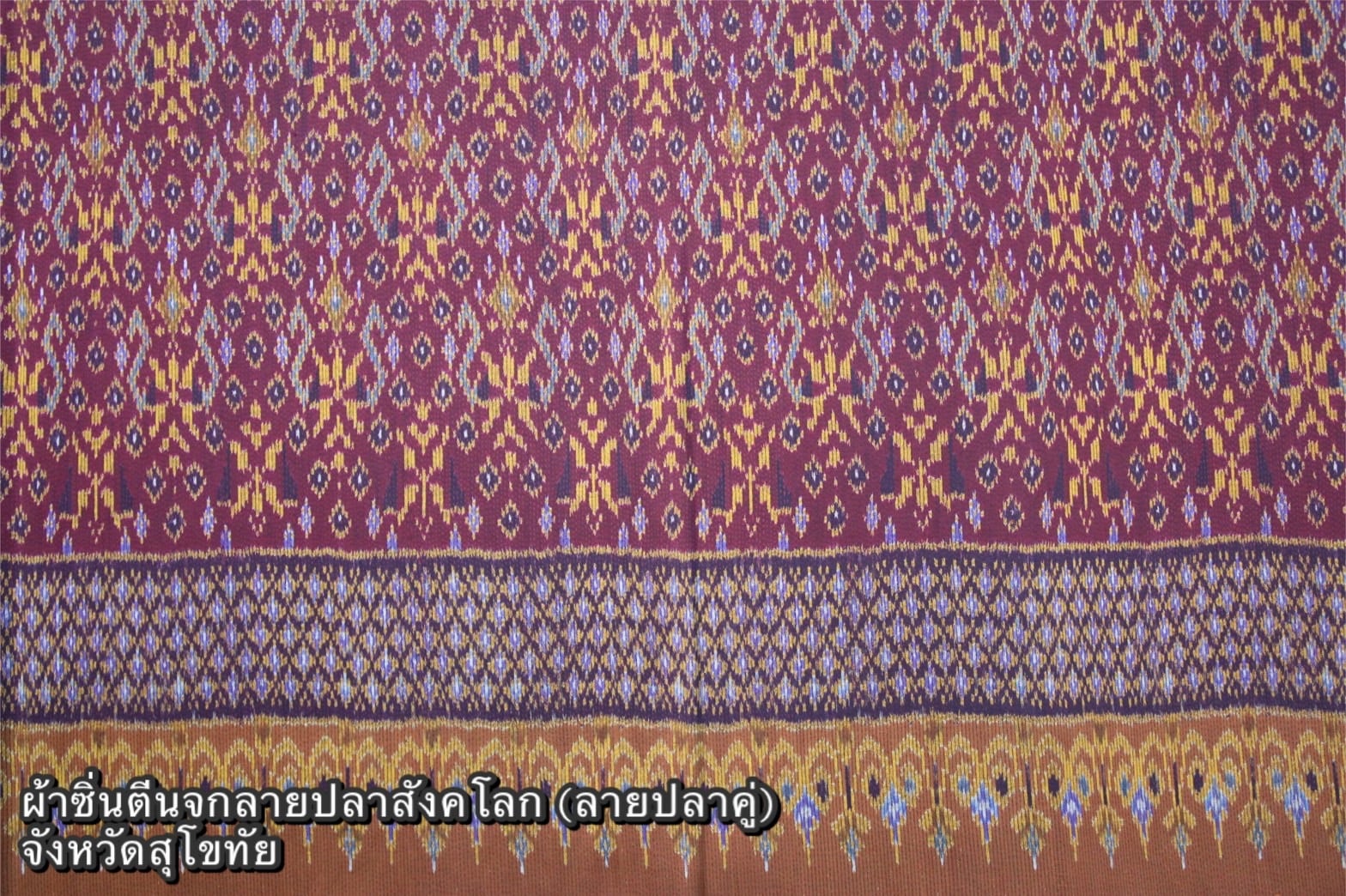 ภาคกลาง อาทิ ผ้าซิ่นตีนจกลายปลาสังคโลก (ลายปลาคู่) จังหวัดสุโขทัย เป็นการผสมผสานลายจกที่เป็นอัตลักษณ์ของชาวไทยพวนบ้านหาดเสี้ยว ผสมกับการคิดค้นลายสังคโลก ที่นำเอาลายปลาคู่และลายดอกมาดัดแปลงเป็นลายจกบนผืนผ้า มีความหมายว่า ความอุดมสมบูรณ์ ความรุ่งเรื่อง ร่มเย็น และการมีคู่ครองที่มั่นคง