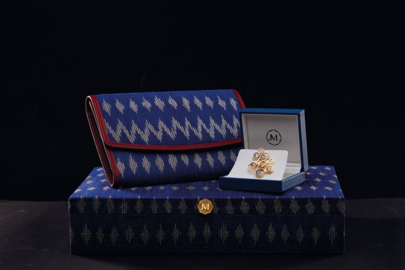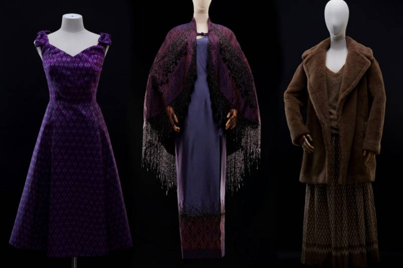 นอกจากนี้ยังมีเสื้อผ้าดีไซน์หรูหราที่รังสรรค์โดยผ้าไทยอย่าง ชุดกระโปรงสั้นแขนกุดเข้าเอวผ้าไหมมัดหมี่ หรือจะเป็นผ้าเสื้อแขนกุด ผ้านิตใยแคชเมียร์ใส่กับกระโปรงยาวทรงสุ่มผ้าไหมมัดหมี่ คลุมทับด้วยเสื้อโค้ตทรงตรงขนเฟอร์ก็ปังเวอร์!...ยังไม่หมดเพียงเท่านี้ เพราะยังมีไอเท็มเด็ดสุดพิเศษอย่างเครื่องประดับเข็มกลัดทองคำประดับเซฟไฟร์และเพชรมาพร้อมกระเป๋าคลัตช์สีน้ำเงินผ้าไหมมัดหมี่บุหนังด้านใน รวมไปถึงรองเท้า กระเป๋า และเครื่องประดับที่ผสานความหรูหรากับวิถีขนบธรรมเนียมไทยได้อย่างไร้ที่ติกว่า 21 ชิ้นงานเลยทีเดียว