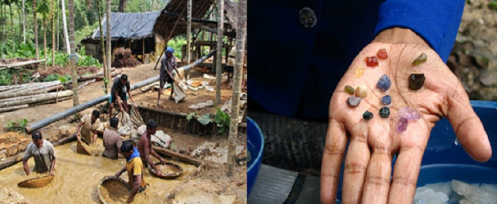 การทำเหมืองในศรีลังกาส่วนใหญ่เป็นการเปิดประมูลให้สัมปทานแก่ภาคเอกชน โดยภายใต้กฎระเบียบที่เคร่งครัดจากทางรัฐบาลในเรื่องสิ่งแวดล้อมและแรงงานเหมืองการทำเหมืองเป็นแบบอนุรักษ์นิยม (Conservative or Local Gem Mining) ที่ใช้แรงงานคนในการขุดเป็นหลักโดยเหมืองอัญมณีมากกว่าร้อยละ 80 ตั้งอยู่ที่เมืองรัตนปุระ (Ratnapura) ซึ่งอยู่ในเขตปกครอง Sabaragamuwaนอกนั้นที่เหลือกระจายตัวไปตามเมืองมาตาเล (Matale) เมืองบาดุลลา (Badulla) และเมืองโมเนรากาลา (Moneragala) ก่อให้เกิดการจ้างงานเฉพาะแรงงานเหมืองกว่า 6 แสนคนโดยอัญมณีที่มีชื่อเสียงและเป็นสินค้าสำคัญของศรีลังกา คือ พลอยแซปไฟร์สีน้ำเงิน ที่มีชื่อเรียกตามแหล่งขุดค้นว่า “ซีลอนแซปไฟร์” (Ceylon Sapphire) รวมถึงพลอยที่มีเอกลักษณ์เป็นสตาร์สโตน (Star Stone) หรือแซปไฟร์สาแหรก นอกจากนี้ ยังขุดพบอัญมณีล้ำค่าชนิดอื่น ๆ ได้แก่ ทับทิม คริโซเบริล แอเมทิสต์ โกเมนทัวร์มาลีน สปิเนล โทแพซ มูนสโตน เพทาย และเพริดอตซึ่งสามารถสร้างมูลค่าทางการค้าและทำให้ศรีลังกาเป็นแหล่งวัตถุดิบสำคัญแห่งหนึ่งของโลก