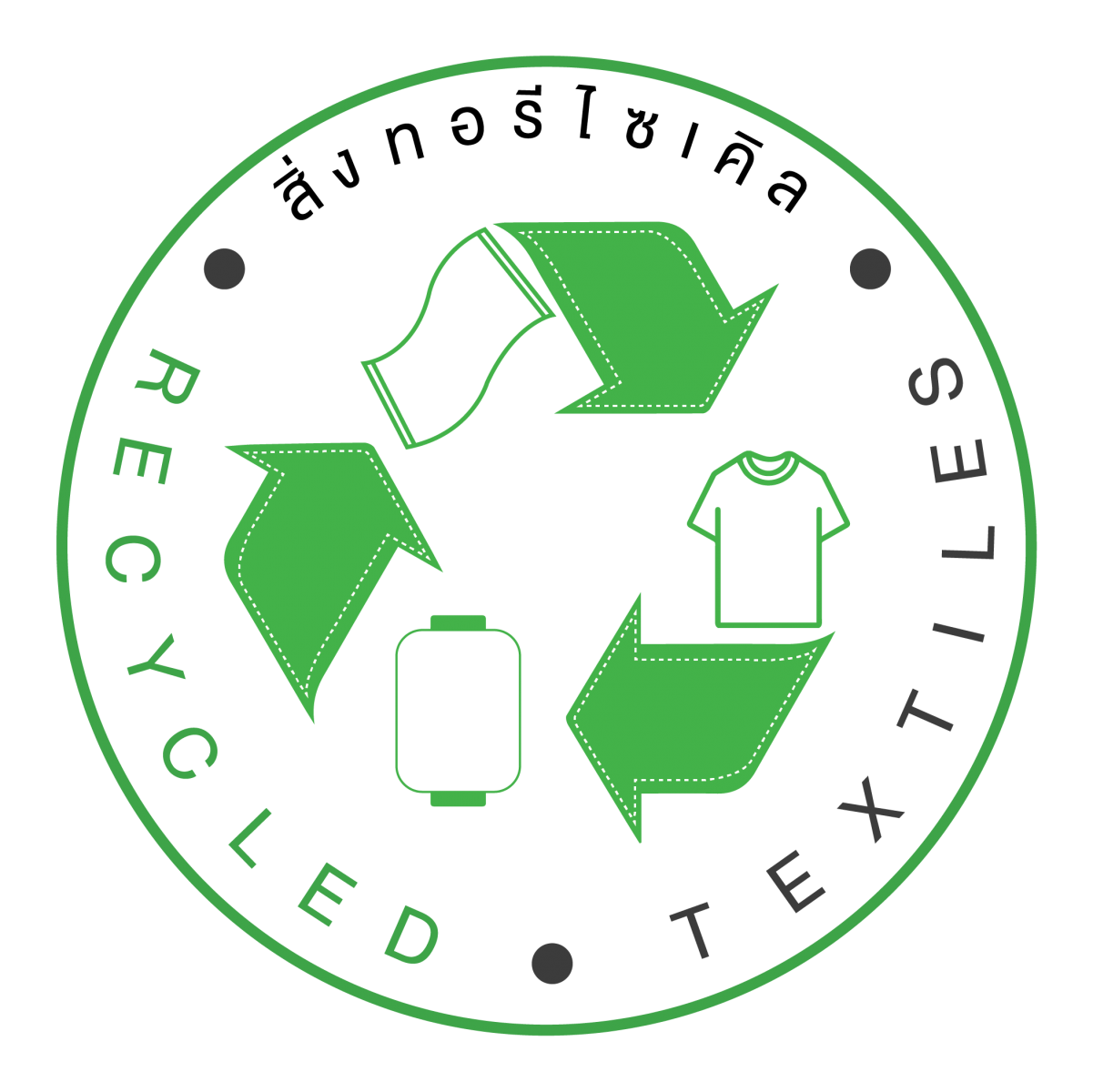 Recycled Textiles Mark สถาบันพัฒนาอุตสาหกรรมสิ่งทอได้เห็นถึงความสำคัญในการแก้ไขปัญหาขยะที่เกิดขึ้นในปัจจุบัน และต้องการส่งเสริมแนวคิด Circular Economy จึงได้สร้างมาตรฐานฉลาก “สิ่งทอรีไซเคิล” โดยมีข้อกำหนด 3 เรื่องดังนี้ 1) ต้องมีองค์ประกอบของวัสดุรีไซเคิลไม่น้อยกว่า 15%2)ต้องไม่มีสารอันตรายปนเปื้อนมากกว่าปริมาณที่กำหนด 3) ผู้ผลิตต้องให้ความสำคัญในเรื่องความรับผิดชอบต่อสังคมและสิ่งแวดล้อม เพื่อเป็นทางเลือกให้กับผู้บริโภคที่ตระหนักในเรื่องการรักษาสิ่งแวดล้อม