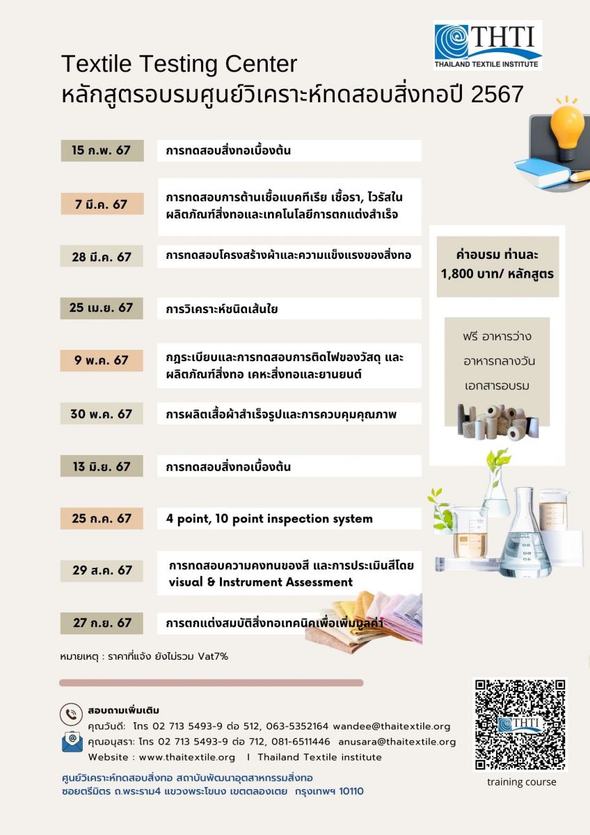 หลักสูตรอบรมศูนย์วิเคราะห์ทดสอบสิ่งทอปี 2567