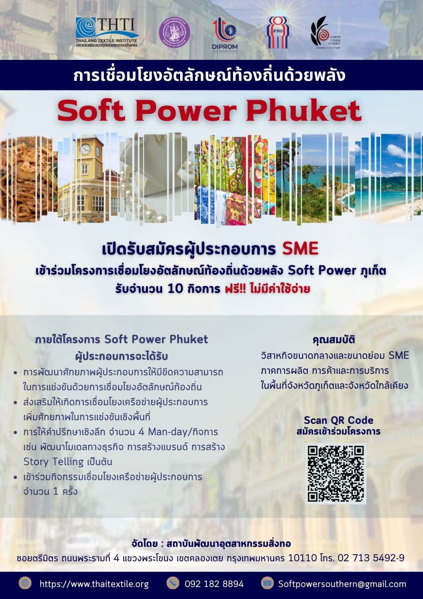 เปิดรับสมัครผู้ประกอบการ SME เข้าร่วมโครงการเชื่อมโยงอัตลักษณ์ท้องถิ่นด้วยพลัง Soft Power ภูเก็ต
