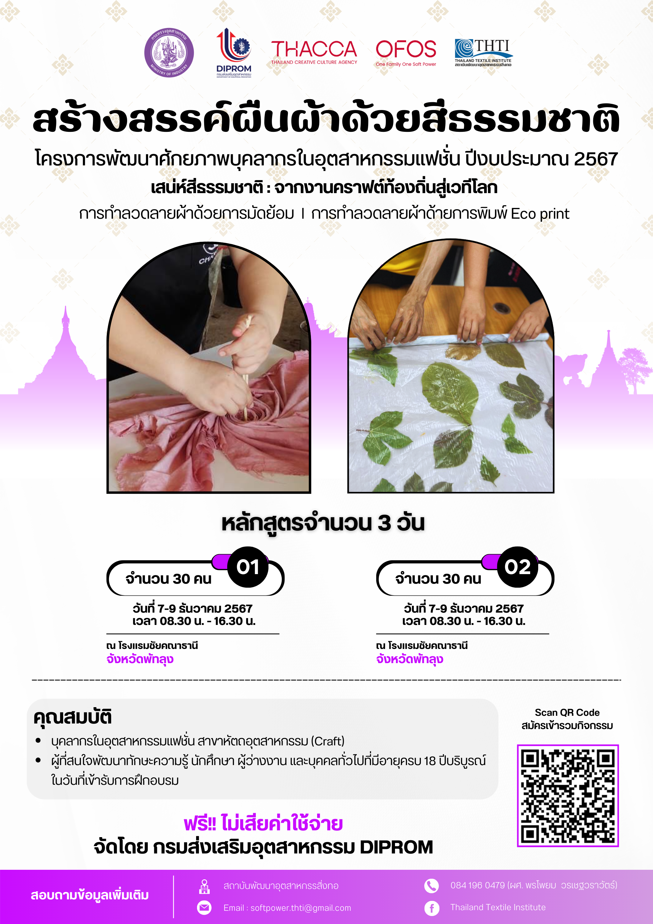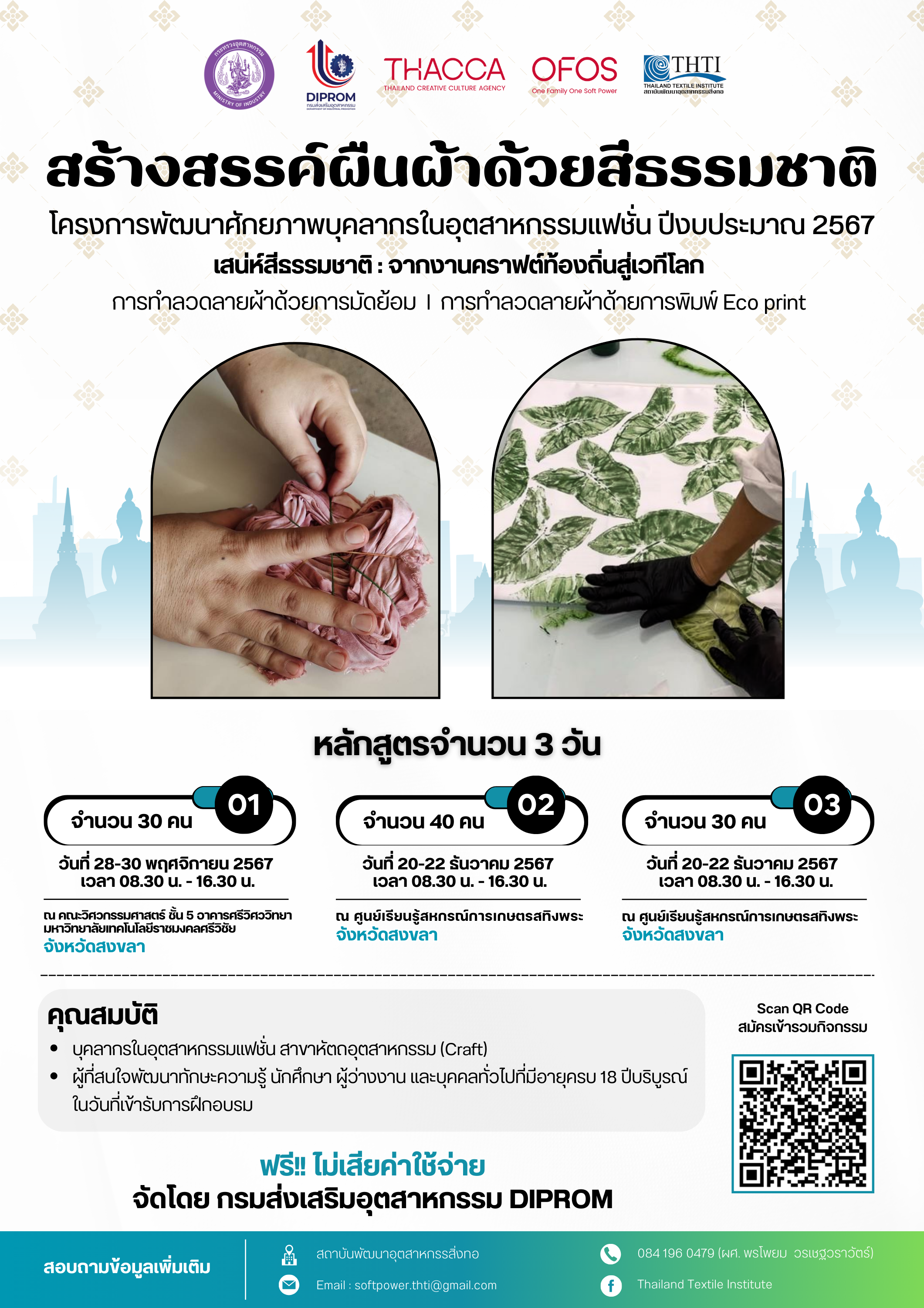 กรมส่งเสริมอุตสาหกรรม (DIPROM) หรือ ดีพร้อม ภายใต้กระทรวงอุตสาหกรรม เปิดรับสมัครอบรมฟรี!! หลักสูตร "การสร้างสรรค์ฝีมืองานปักด้วยอัตลักษณ์ท้องถิ่น" ในพื้นที่จังหวัดสงขลา สุราษฎร์ธานี และพัทลุง