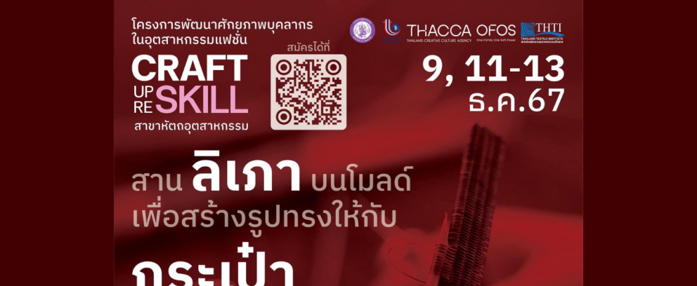 โครงการพัฒนาศักยภาพบุคลากรในอุตสาหกรรมแฟชั่น ปีงบประมาณ 2567 CRAFT UPSKILL & RESKILL สานลิเภาบนโมลด์เพื่อสร้างรูปทรงให้กับกระเป๋าแบบ Basket Work