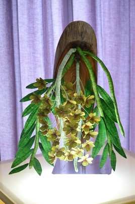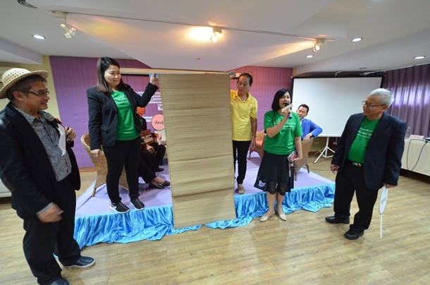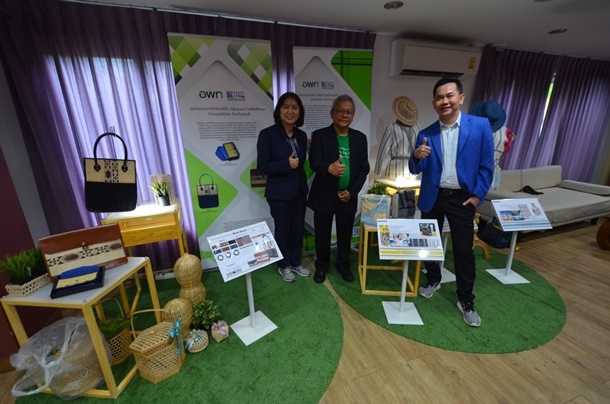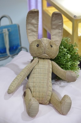 พัฒนาต้นแบบตุ๊กตากระต่ายจากเสื่อจันทบูร กระจกเงาตกแต่งด้วยเสื่อจันทบูร กระเป๋าลายขั้นบันได กล้วยไม้จำลอง และผ้าม่านทอจากกกและตะไคร้หอม