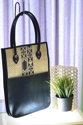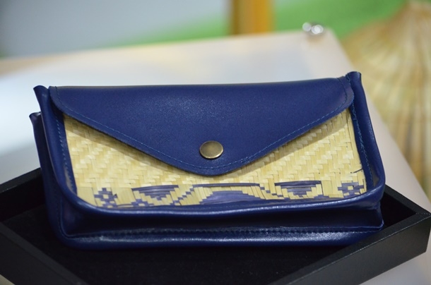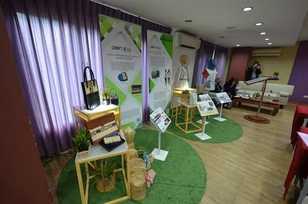 พัฒนาต้นแบบกระเป๋าจักสานตกแต่งด้วยหนังเทียม ประกอบด้วย กระเป๋าถือ กระเป๋าใส่ของ และกระเป๋าเอกสาร