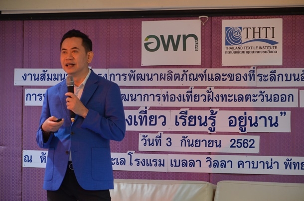 วันที่ 3 กันยายน พ.ศ.2562 (จังหวัดชลบุรี) องค์การบริหารการพัฒนาพื้นที่พิเศษเพื่อการท่องเที่ยวอย่างยั่งยืน (องค์การมหาชน) หรือ อพท. โดยสำนักงานพื้นที่พิเศษ 3หรือ อพท. (เขตพัฒนาการท่องเที่ยวฝั่งทะเลตะวันออก) นายธิติ จันทร์แต่งผล ผู้จัดการสำนักงานพื้นที่พิเศษ 3เปิดเผยว่า อพท.3ได้ดำเนินโครงการพัฒนาผลิตภัณฑ์และของที่ระลึกบนอัตลักษณ์ชุมชน เพื่อการท่องเที่ยวในเขตพัฒนาการท่องเที่ยวฝั่งทะเลตะวันออก (Active Beach) โดยมีวัตถุประสงค์เพื่อต่อยอดและตั้งเป้าสร้างองค์ความรู้ พัฒนาผลิตภัณฑ์ โดยนำวิถีชีวิต อัตลักษณ์ท้องถิ่น ผสมผสานกับเทรนด์ความต้องการของผู้บริโภคปัจจุบัน สร้างมูลค่าเพิ่มและยกระดับผลิตภัณฑ์ เพื่อสร้างรายได้จากการท่องเที่ยวให้กับประชาชนในพื้นที่เพิ่มขึ้น ควบคู่ไปกับการเติบโตของเขตการพัฒนาพิเศษภาคตะวันออก (EEC) โดยมีสถาบันพัฒนาอุตสาหกรรมสิ่งทอ (สสท.) เป็นที่ปรึกษา