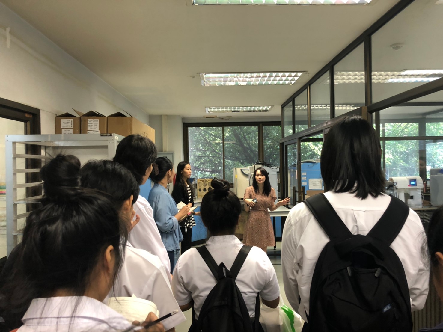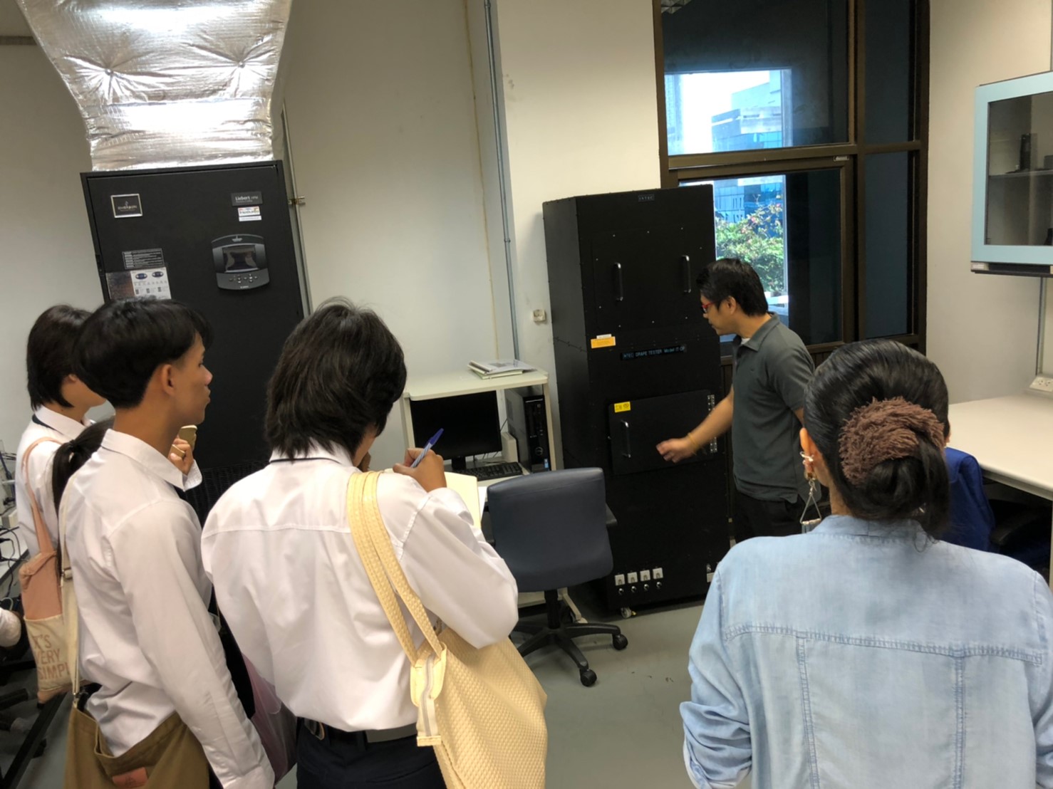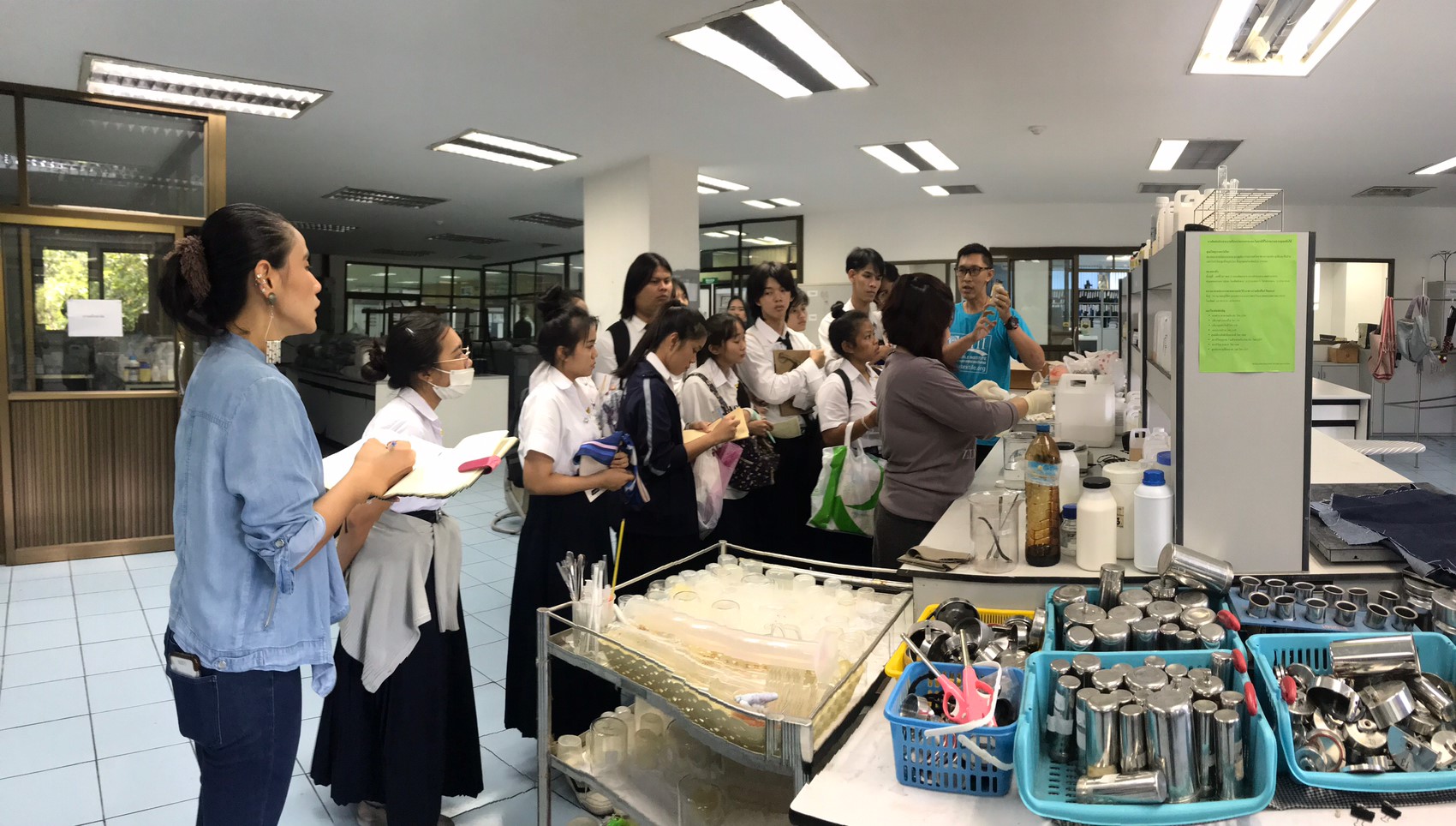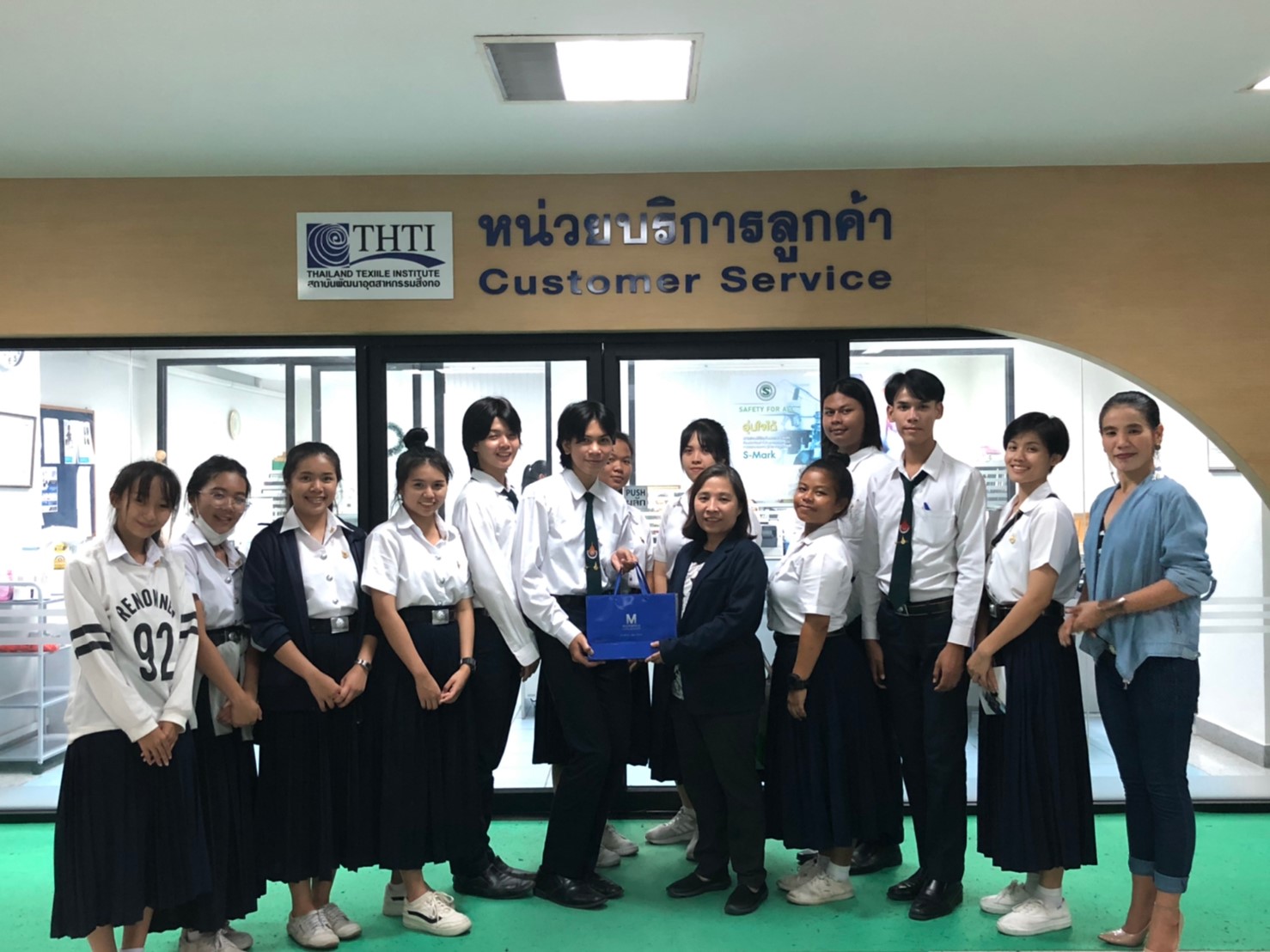 นางทิพวรรณ พาณิชการ รักษาการ ผู้อำนวยการศูนย์วิเคราะห์ทดสอบสิ่งทอ สถาบันพัฒนาอุตสาหกรรมสิ่งทอ ให้การต้อนรับอาจารย์และนักศึกษาจาก คณะเทคโนโลยีคหกรรมศาสตร์ (วิชาวัสดุสิ่งทอและการตัดเย็บเพื่องานแฟชั่น) สาขาการออกแบบแฟชั่นระดับปริญญาตรี มหาวิทยาลัยเทคโนโลยีราชมงคลกรุงเทพ ในโอกาสเข้าเยี่ยมชมศึกษาดูงาน ณ สถาบันพัฒนาอุตสาหกรรมสิ่งทอ