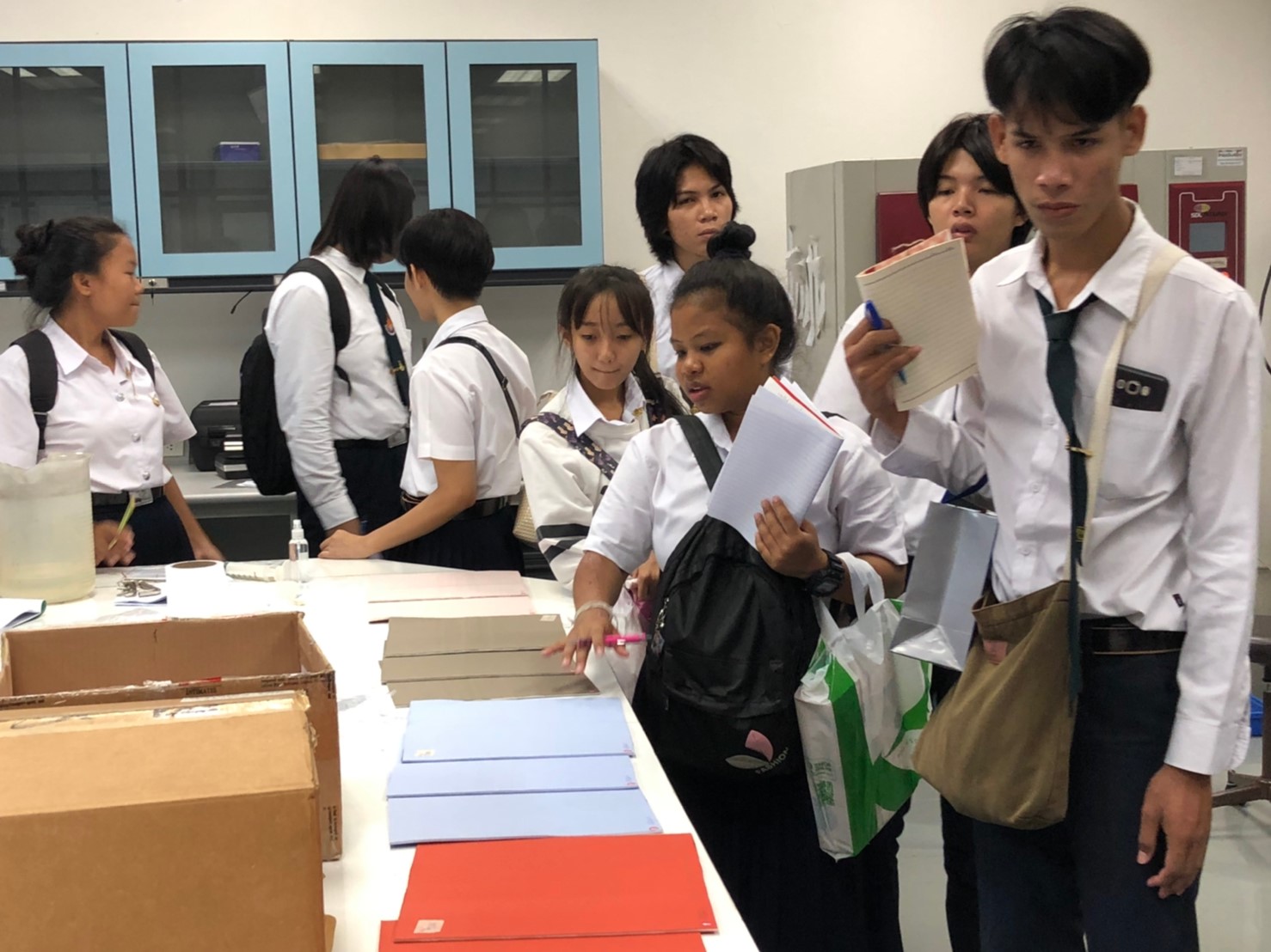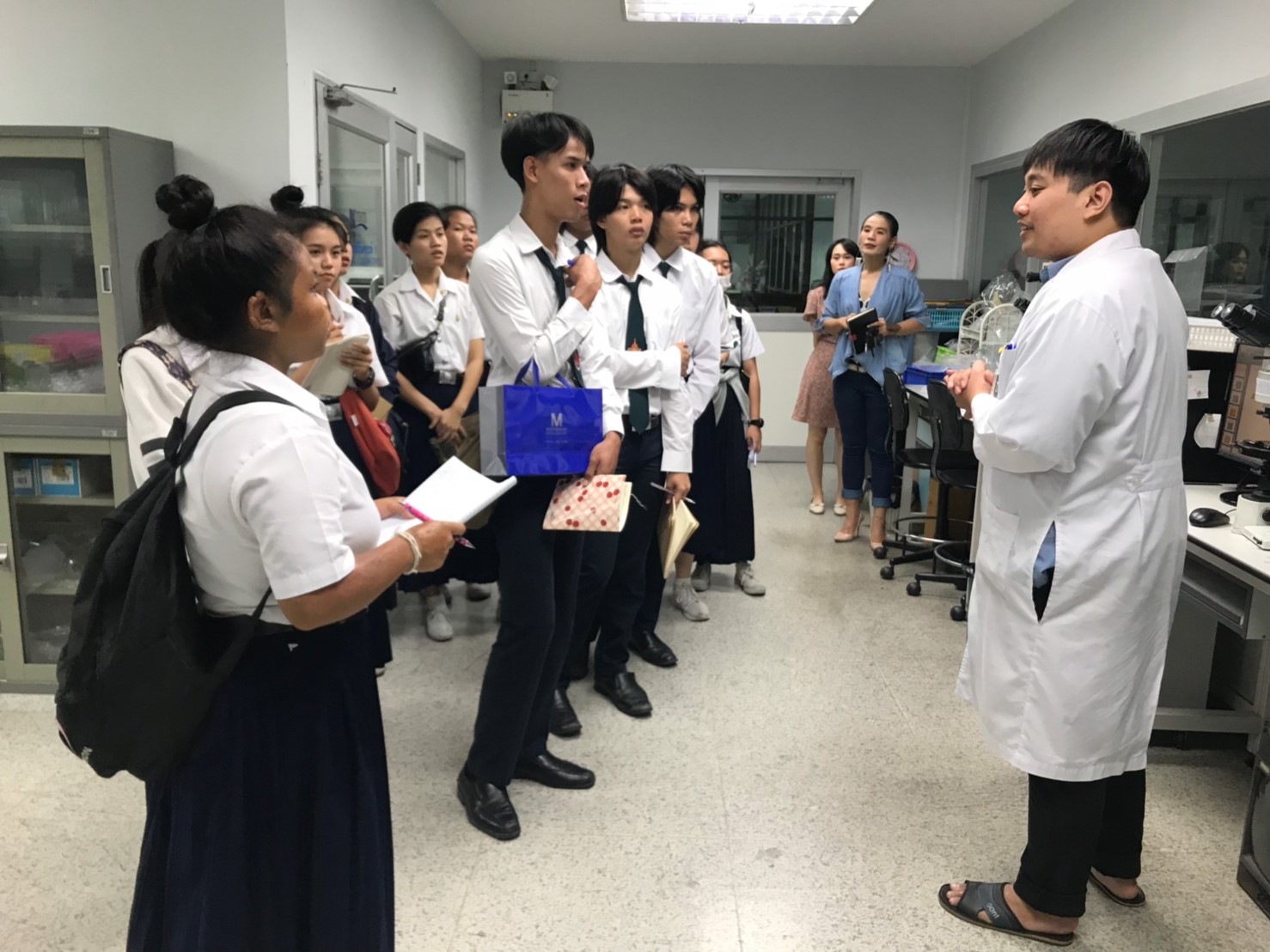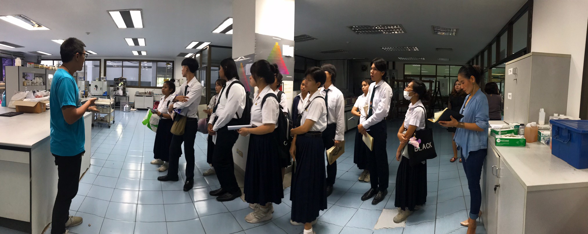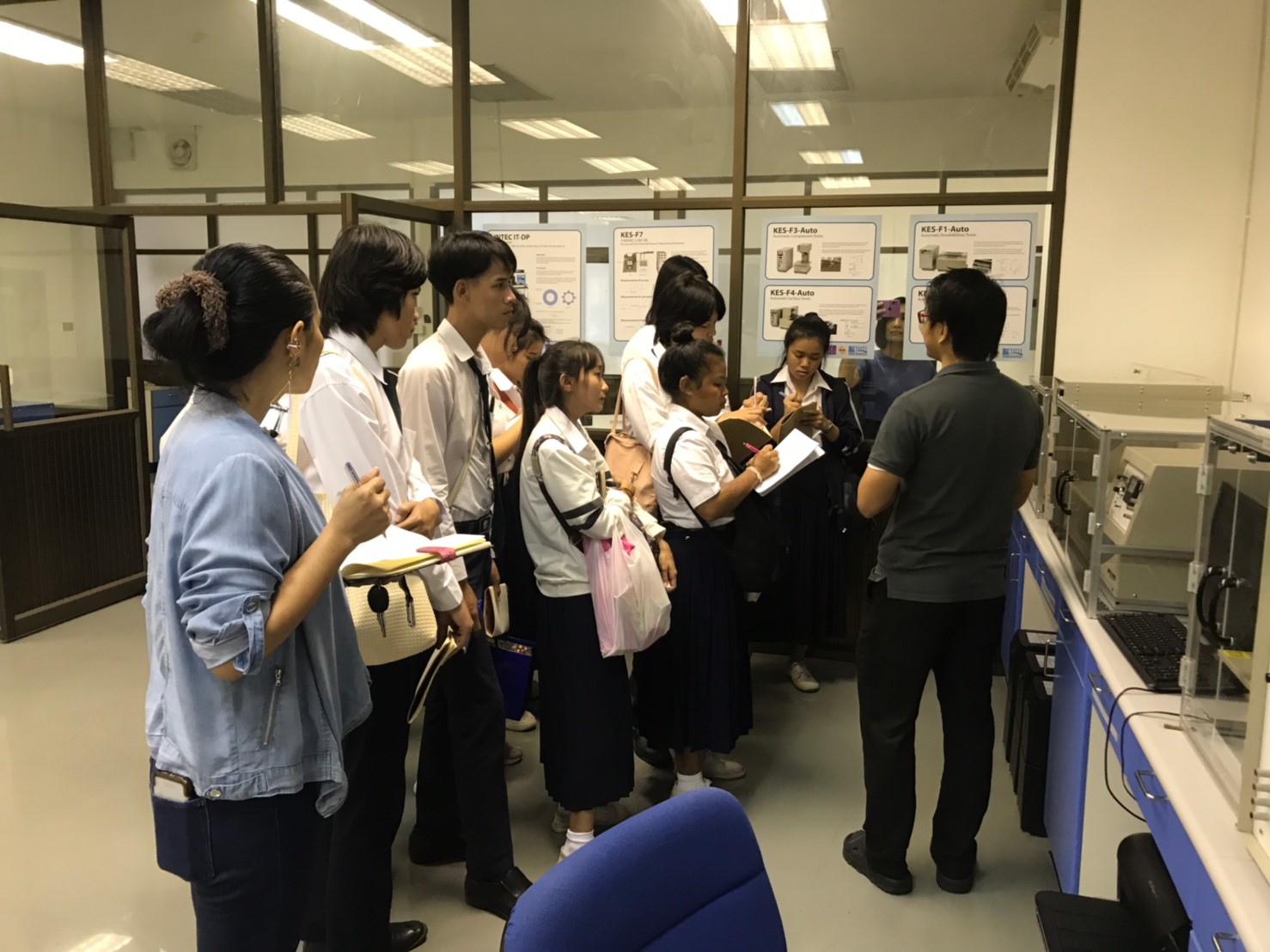 นางทิพวรรณ พาณิชการ รักษาการ ผู้อำนวยการศูนย์วิเคราะห์ทดสอบสิ่งทอ สถาบันพัฒนาอุตสาหกรรมสิ่งทอ ให้การต้อนรับอาจารย์และนักศึกษาจาก คณะเทคโนโลยีคหกรรมศาสตร์ (วิชาวัสดุสิ่งทอและการตัดเย็บเพื่องานแฟชั่น) สาขาการออกแบบแฟชั่นระดับปริญญาตรี มหาวิทยาลัยเทคโนโลยีราชมงคลกรุงเทพ ในโอกาสเข้าเยี่ยมชมศึกษาดูงาน ณ สถาบันพัฒนาอุตสาหกรรมสิ่งทอ