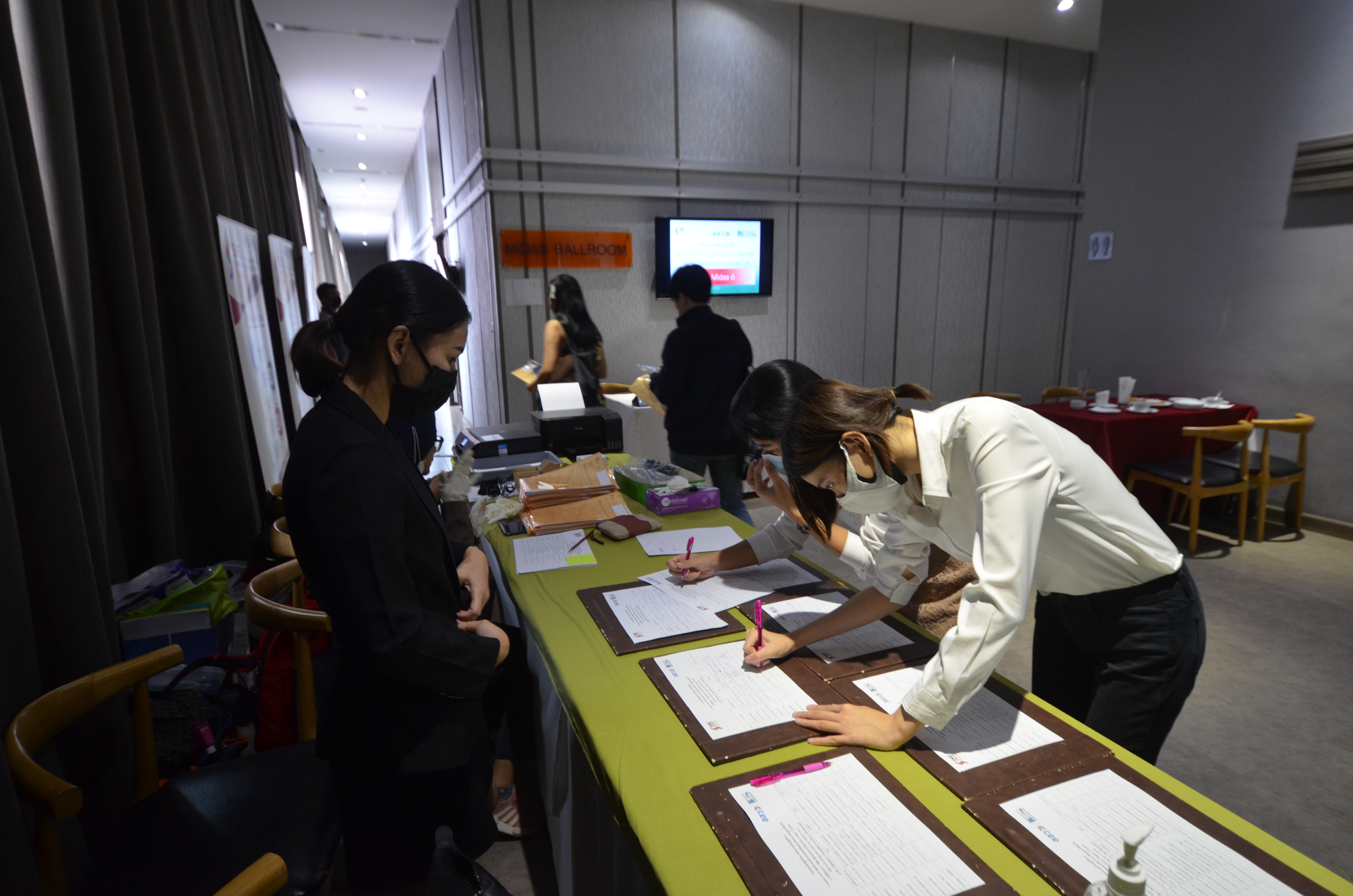 โดยก่อนเข้าการอบรม สสว.และสถาบันฯสิ่งทอ ได้ปฏิบัติการอย่างเคร่งครัดตามมาตรการป้องกันโรคโควิด-19 จากทางโรงแรมโดยมีเจ้าหน้าที่วัดอุณภูมิร่างกาย และมี เจลแอลกอฮอล์ พร้อมถุงมือให้กับผู้เข้าร่วมสัมมนาในระหว่างการเข้าอบรม