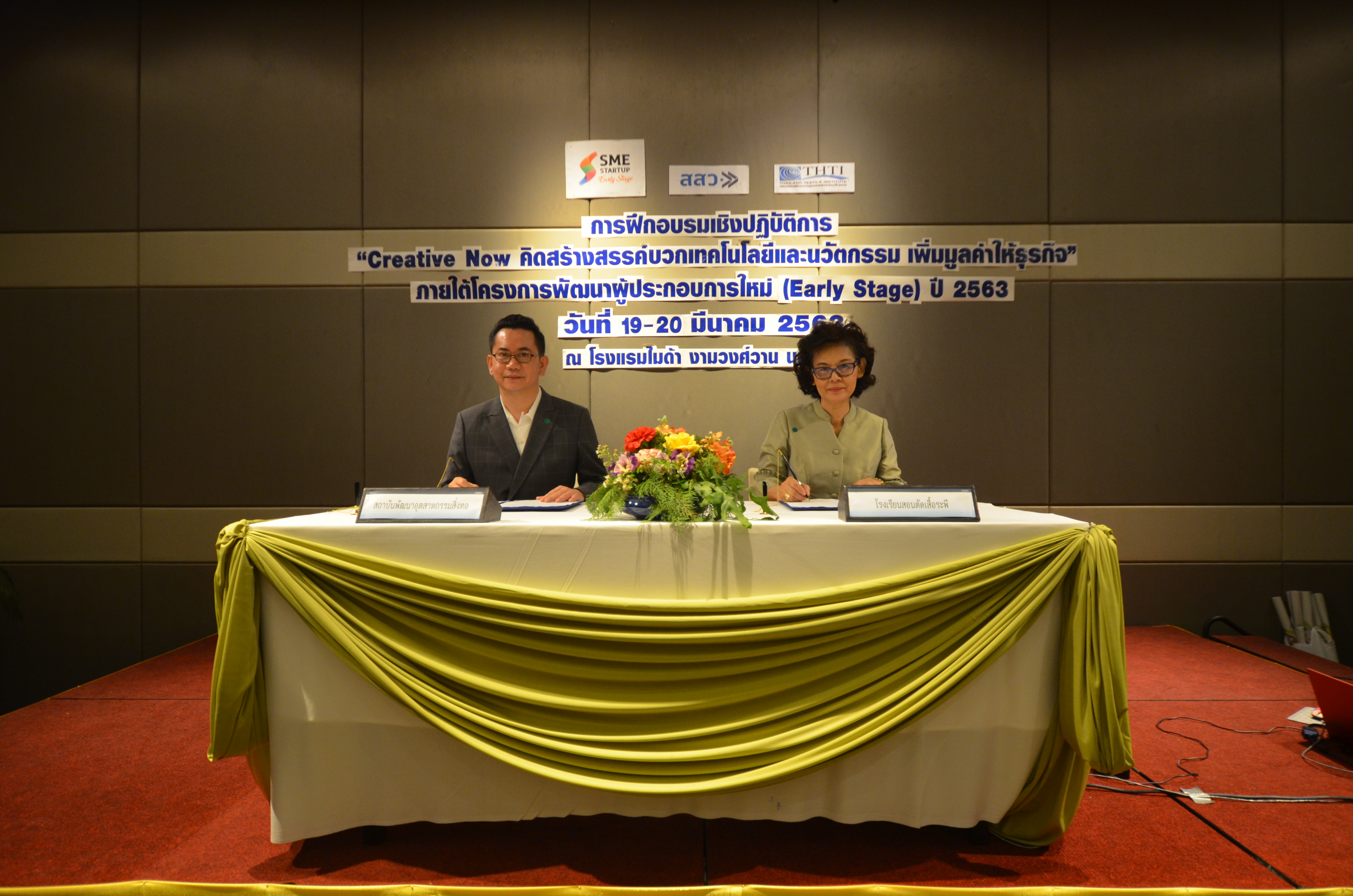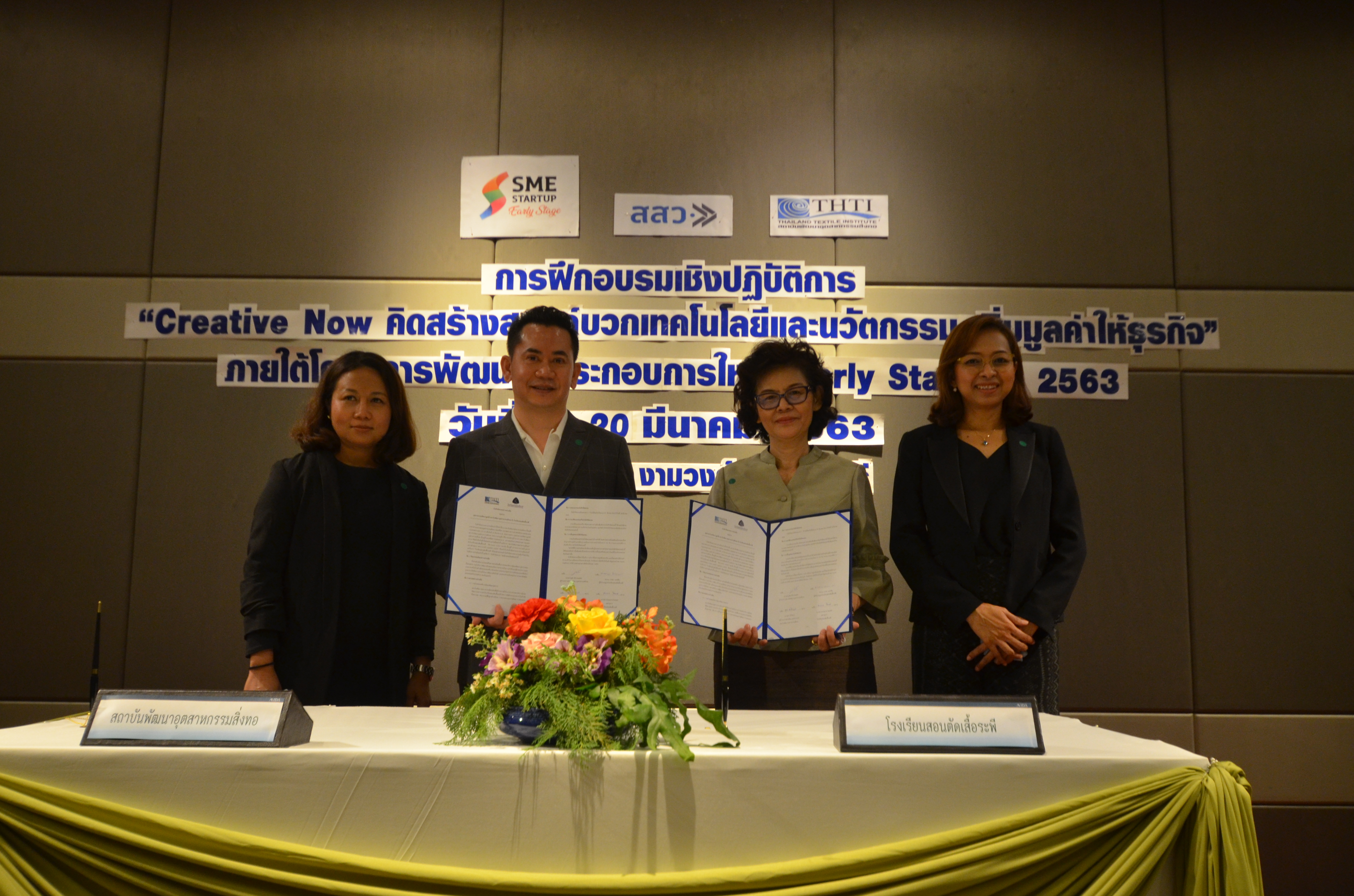 โดยได้นำร่องภารกิจร่วมกันในกิจกรรมแรกคือ เชิญนักเรียนจากโรงเรียนสอนตัดเสื้อระพี เข้าร่วมโครงการ“พัฒนาผู้ประกอบการใหม่ (Early Stage)” ปี 2563 ภายใต้การสนับสนุนงบประมาณสนับสนุนจาก สสว. และดำเนินการโดยสถาบันพัฒนาอุตสาหกรรมสิ่งทอ โดยเริ่มเปิดอบรมในเขตกรุงเทพฯ และปริมณฑล ในระหว่างวันที่ 19-20 มีนาคม 2563 ในหัวข้อ "Creative NOW คิดสร้างสรรค์ บวกเทคโนโลยีและนวัตกรรม เพิ่มมูลค่าทางธุรกิจ" ณ ห้องไมดาส 6 โรงแรมไมด้า งามวงศ์วาน