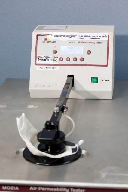 2.การซึมผ่านได้ของอากาศ (1 – 50 ซีซี ต่อพื้นที่ตารางเซนติเมตรต่อวินาที) โดยหากอากาศยิ่งผ่านได้มากประสิทธิภาพการป้องกันฝุ่นละอองไอจามก็จะยิ่งน้อย (หัวข้อทดสอบการผ่านได้ของอากาศ โดยข้อกำหนดด้านประสิทธิภาพ คือ 1 < X <50)