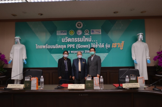 กระทรวงสาธารณสุข ผนึกกำลังสถาบันพัฒนาอุตสาหกรรมสิ่งทอ พัฒนาชุด PPE (Isolation Gown) ใช้ซ้ำ ซักได้ 20 ครั้ง นวัตกรรมใหม่ทางการแพทย์ คำนึงความปลอดภัยของบุคลากรทางการแพทย์และผู้ป่วยเป็นหลัก ทดแทนชุดแบบใช้ครั้งเดียวทิ้งได้กว่า 800,000 ชุด พร้อมมีมาตรการอำนวยความสะดวกแก่ผู้ประกอบการผลิตชุดให้เพียงพอ ทดแทนการนำเข้าในอนาคตล็อตแรกผลิตแล้วเสร็จ 44,000 ชุด กระจายให้โรงพยาบาลทั่วประเทศ