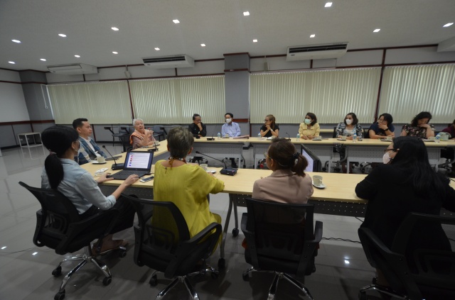 23 มีนาคม 2564 ดร.ชาญชัย สิริเกษมเลิศ ผู้อำนวยการสถาบันพัฒนาอุตสาหกรรมสิ่งทอ พร้อมด้วย นางสาวกฤษณา รวยอาจิณ ที่ปรึกษาสถาบันฯสิ่งทอ นางสุดา ยังให้ผล ผู้อำนวยการฝ่ายพัฒนาอุตสาหกรรม และคณะทำงาน ให้การต้อนรับ ดร.สุรภีร์ โรจนวงศ์ นายกสมาคมการค้าส่งเสริมหัตถกรรมไทย พร้อมคณะ ในโอกาสเยี่ยมชม สถาบันพัฒนาอุตสาหกรรมสิ่งทอ และหารือแนวทางในการพัฒนาการค้า การส่งเสริมหัตถกรรมไทย ในกลุ่มผ้าทอพื้นเมืองและผลิตภัณฑ์ที่ทำจากผ้าทอพื้นเมืองให้มีคุณภาพ ทันสมัย ตอบสนองความต้องการของตลาด เพื่อก่อให้เกิดการเพิ่มมูลค่าของสินค้า ยอดจำหน่ายให้มากขึ้น และเกิดการพัฒนาอย่างยั่งยืนสอดคล้องกับนโยบายภาครัฐในการพัฒนาอย่างยั่งยืน