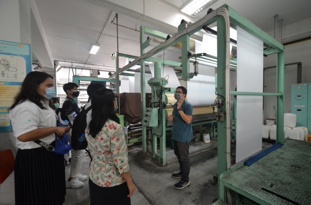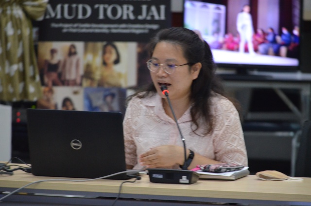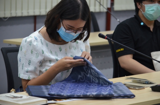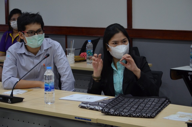 พร้อมรับฟังการบรรยายพิเศษ ในหัวข้อ ยกระดับมูลค่าผลิตภัณฑ์ผ้าพื้นเมืองด้วยนวัตกรรมและการออกแบบ โดย ดร.ชาญชัย สิริเกษมเลิศ ผู้อำนวยการสถาบันฯ และ การบรรยายหัวข้อ มาตรฐานผลิตภัณฑ์ชุมชน (มผช.) โดยนางสาวพรพิมล เงาแสงธรรม ผู้จัดการห้องทดสอบสิ่งทอ ทั้งนี้ เพื่อถ่ายทอดองค์ความรู้ด้านเทคโนโลยี นวัตกรรม ที่สามารถนำมาพัฒนาผสมผสานและสร้างมูลค่าเพิ่มให้กับผลิตภัณฑ์ที่ทำจากผ้าพื้นเมือง รวมทั้งความรู้ในด้านการวิเคราะห์ทดสอบ มาตรฐานผลิตภัณฑ์สิ่งทอสำหรับชุมชน เพื่อนำมาวิเคราะห์และประยุกต์ใช้ในการเรียนการสอนด้านเศรษฐศาสตร์และเศรษฐกิจชุมชนต่อไป