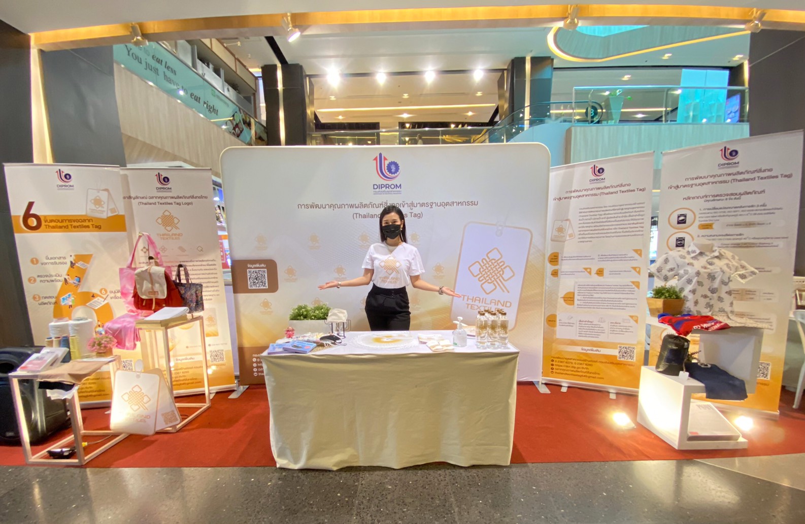 เมื่อเร็ว ๆ นี้ กรมส่งเสริมอุตสาหกรรม (กสอ.) กระทรวงอุตสาหกรรม โดยกองพัฒนาอุตสาหกรรมสร้างสรรค์ ได้ดำเนินกิจกรรม สร้างการรับรู้ ตราสัญลักษณ์คุณภาพผลิตภัณฑ์สิ่งทอไทย หรือ Thailand Textiles Tag ซึ่งเป็นเครื่องหมายรับรองผลิตภัณฑ์สิ่งทอที่ผลิตในประเทศไทยและได้รับการพัฒนาคุณภาพ โดยผ่านการตรวจสอบตามหลักเกณฑ์มาตรฐานสากล ทั้งนี้ เพื่อกระตุ้นการรับรู้ของผู้บริโภค ให้เกิดความต้องการใช้ผลิตภัณฑ์สิ่งทอและเครื่องนุ่งห่มของประเทศไทย รวมทั้งเป็นการเร่งพัฒนาสินค้าของผู้ประกอบการสิ่งทอไทยในยุค 2021 ให้มีคุณภาพและมาตรฐาน สร้างความเชื่อมั่นให้กับผู้บริโภคทั้งในและต่างประเทศ โดยกิจกรรมดังกล่าวจัดขึ้น ณ บริเวณ ชั้น 2 The Mercury@Chidlom ภายในการจัดกิจกรรม ได้ดำเนินงานภายใต้มาตรการป้องกันโควิด19 อย่างเคร่งครัด