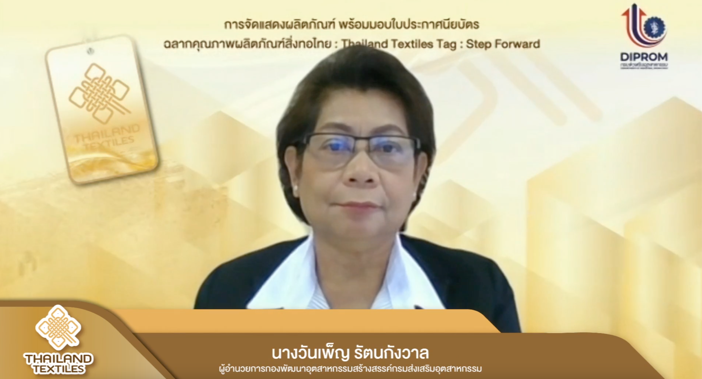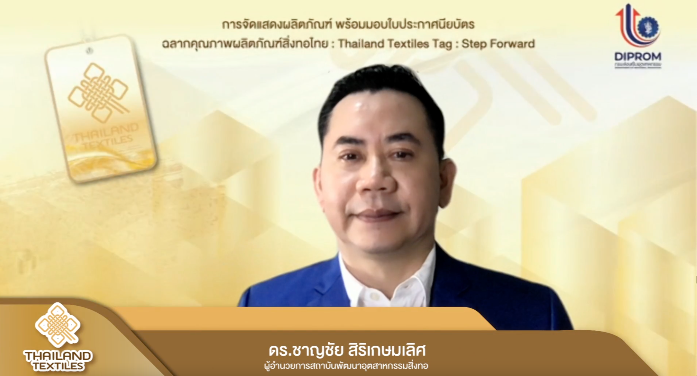 กรมส่งเสริมอุตสาหกรรม (กสอ.) กระทรวงอุตสาหกรรม โซว์ผลสำเร็จจัดแสดงสินค้าพร้อมส่งเสริมการจำหน่าย ผลิตภัณฑ์สิ่งทอที่ผ่านการรับรองฉลากคุณภาพผลิตภัณฑ์สิ่งทอไทยปี 2564 พร้อมมอบประกาศนียบัตร คาดสร้างมูลค่าเพิ่มสิ่งทอไทยไม่น้อยกว่า 20%