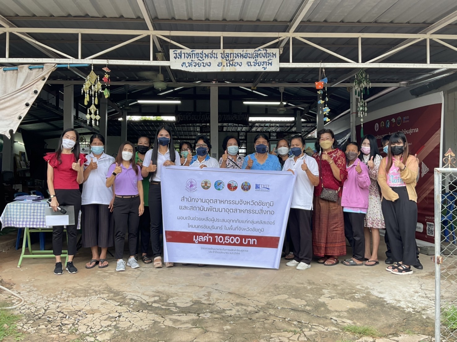 12 ตุลาคม 2564 สำนักงานอุตสาหกรรมจังหวัดชัยภูมิ (สอจ.ชัยภูมิ) ร่วมกับอุตสาหกรรมพัฒนามูลนิธิ สถาบันพัฒนาอุตสาหกรรมสิ่งทอ มอบเงินช่วยเหลือเพื่อฟื้นฟูและเยียวยาแก่ผู้ประกอบการคลัสเตอร์ไหมนครชัยบุรินทร์ ซึ่งเป็นผู้ประสบอุทกภัย ในพื้นที่จังหวัดชัยภูมิ ประกอบไปด้วย กลุ่มสตรีสหกรณ์บ้านต้อน ตำบลบ้านเขว้า อำเภอบ้านเขว้า จังหวัดชัยภูมิ และ กลุ่มผ้าไหมดีวิถีบ้านเขว้า ตำบลบ้านเขว้า อำเภอบ้านเขว้า จังหวัดชัยภูมิ รวมเป็นจำนวน 10,500 บาท