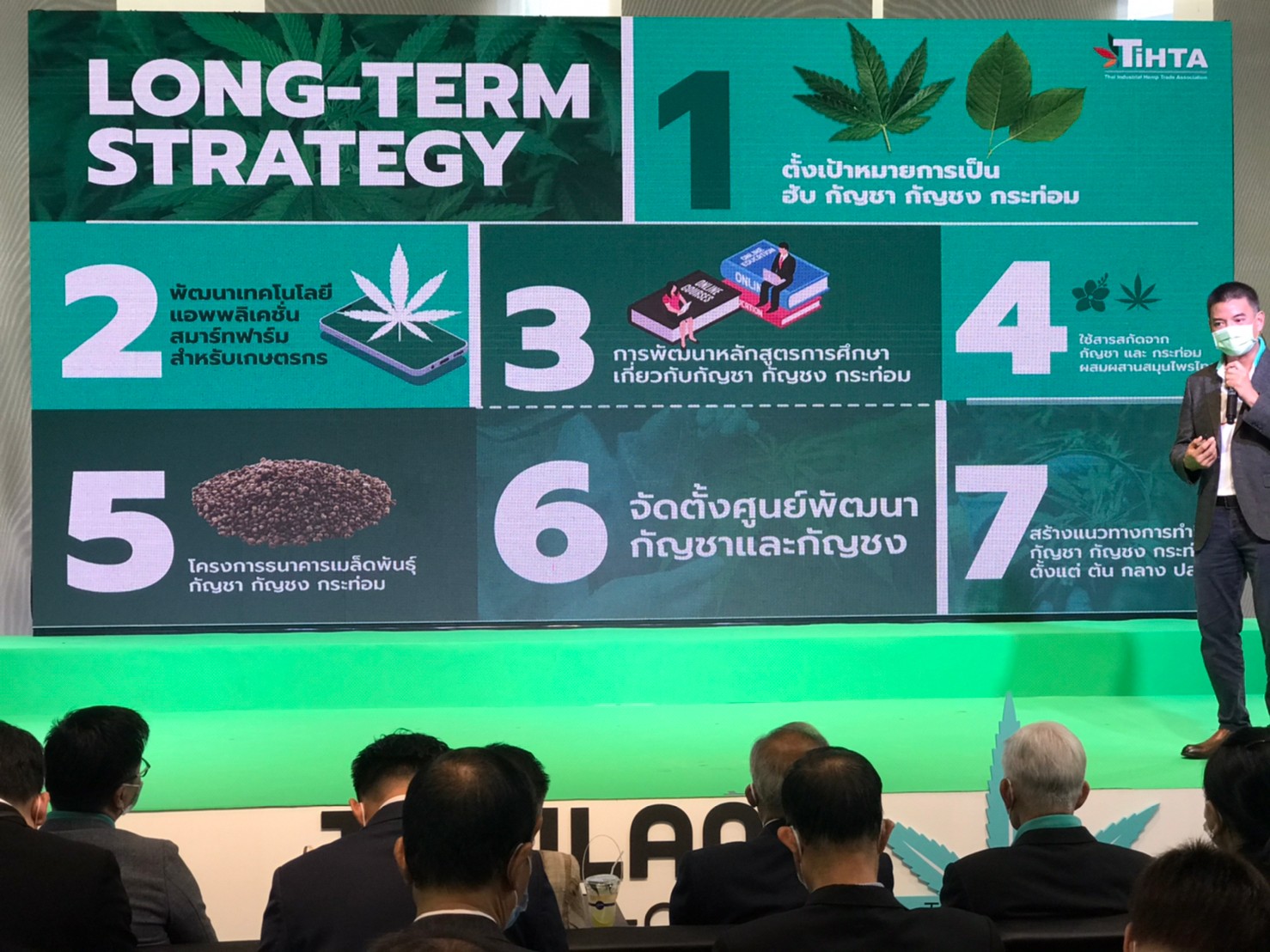(17 พ.ย. 64) สมาคมการค้าอุตสาหกรรมกัญชงไทย (Thai Industrial Hemp Trade Association: TIHTA) เปิดตัวอย่างเป็นทางการครั้งแรก บุกยึดพื้นที่ความสนใจกลางกรุง พันธมิตรภาครัฐเอกชน ตบเท้าร่วมงานแข็งแกร่ง ระหว่าง วันที่ 17 – 21 พ.ย. 64 นำโดย