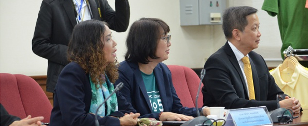 นางสาวพีรพร พละพลีวัลย์ ผู้อำนวยการศูนย์วิเคราะห์ทดสอบสิ่งทอ สถาบันพัฒนาอุตสาหกรรมส่ิงทอ (ลำดับที่ 2 จากซ้าย) ร่วมแถลงข่าวในหัวข้อ "จากคูลโหมด ก้าวสู่เสื้อผ้าเบอร์ ๕ นวัตกรรมลดโลกร้อน" ร่วมให้คำแนะนำ ผลิตอย่างไรถึงได้รับเครื่องหมาย CoolMode โดยมี นางประเสริฐสุข จามรมาน ผู้อํานวยการองค์การบริหารจัดการก๊าซเรือนกระจก และ นายธาตรี ริ้วเจริญ ผู้ช่วยผู้ว่าการการไฟฟ้าฝ่ายผลิตแห่งประเทศไทย ผู้บริหารจาก 2 องค์กรหลักในการขับเคลื่อนกิจกรรมเข้าร่วม พร้อมเชิญชวนผู้บริโภคร่วมสวมใส่เสื้อผ้าประหยัดพลังงานเบอร์ ๕