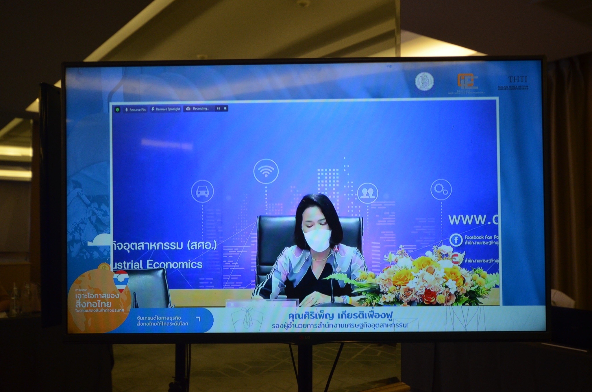 คุณศิริเพ็ญ เกียรติเฟื่องฟู รองผู้อำนวยการ สำนักงานเศรษฐกิจอุตสาหกรรม (สศอ.) ให้เกียรติเป็นประธานในพิธีเปิดงานผ่านระบบซูม ในกิจกรรมสัมมนา จับเทรนด์โอกาสธุรกิจสิ่งทอไทยให้ไกลระดับโลกเจาะโอกาสของสิ่งทอไทยในงานแสดงสินค้าต่างประเทศ โดยมี ดร.ชาญชัย สิริเกษมเลิศ ผู้อำนวยการสถาบันพัฒนาอุตสาหกรรมสิ่งทอ กล่าวรายงาน ณ ห้องซากุระ ชั้น L โรงแรมจัสมินซิตี้ เมื่อวันพุธที่ 20 กรกฎาคม 2565