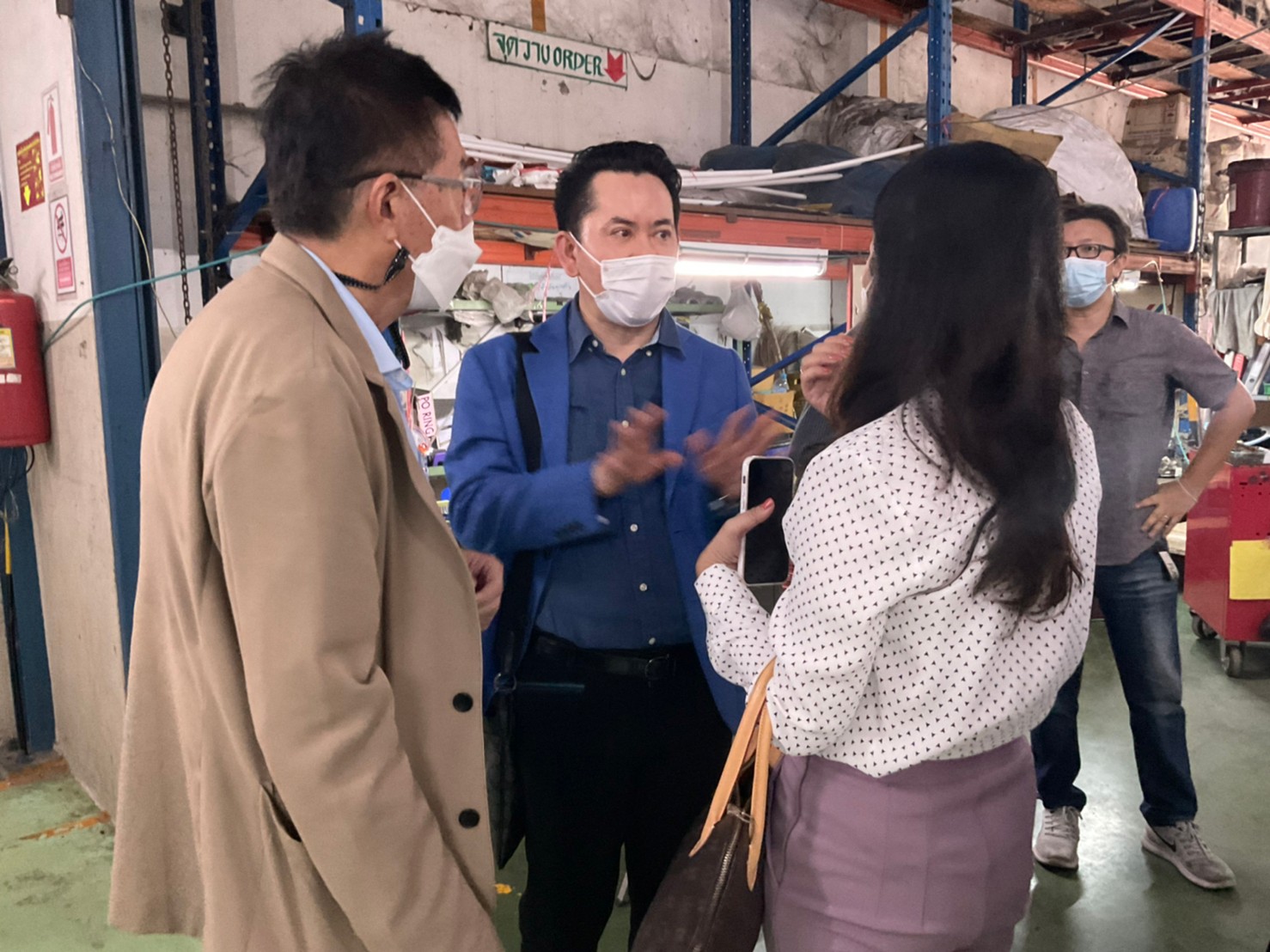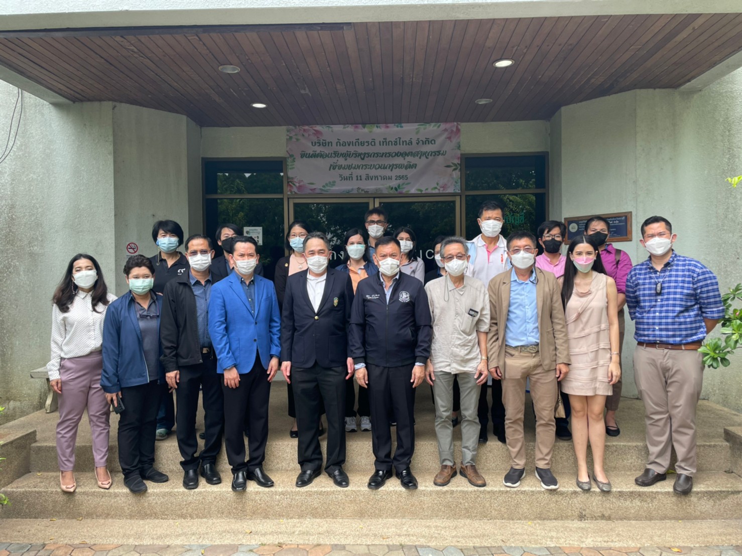 นายสุชาติ ไตรแสงรุจิระ ที่ปรึกษารัฐมนตรีว่าการกระทรวงอุตสาหกรรม พร้อมคณะทำงานโครงการนำร่องศูนย์แปรรูปพืชกัญชงฯ เยี่ยมชม บริษัท ก้องเกียรติ เท็กซ์ไทล์ จ.สระบุรี