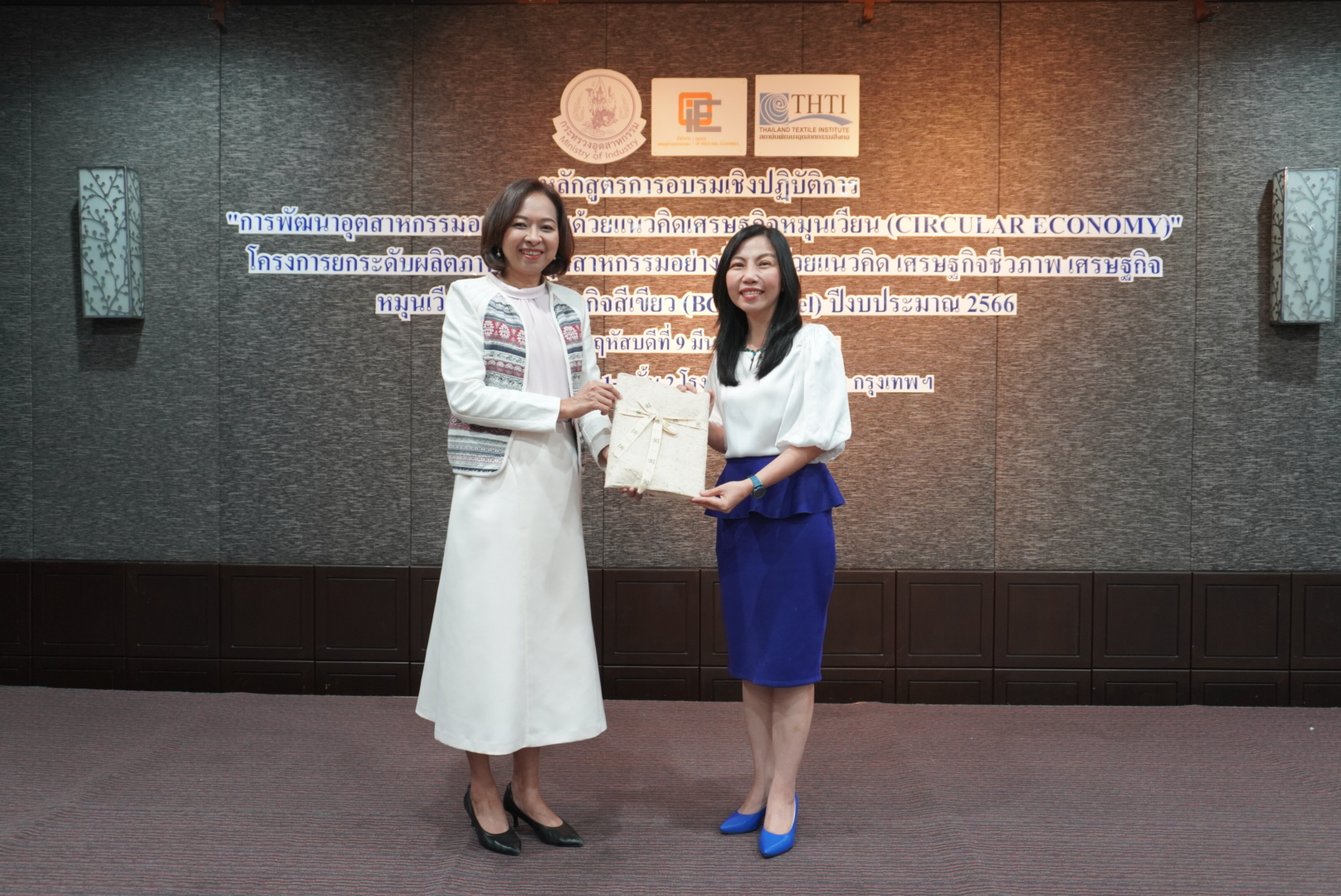 สศอ.ร่วมกับสถาบันฯสิ่งทอ กระทรวงอุตสาหกรรม จัดกิจกรรมอบรม พัฒนาอุตสาหกรรมอย่างยั่งยืนด้วยแนวคิดเศรษฐกิจหมุนเวียน (Circular Economy) โดยมีผู้แทน สำนักงานเศรษฐกิจอุตสาหกรรม (สศอ.) พร้อมด้วย คุณสุดา ยังให้ผล ผู้อำนวยการฝ่ายพัฒนาอุตสาหกรรม สถาบันพัฒนาอุตสาหกรรมสิ่งทอ ผู้ทรงคุณวุฒิด้านเศรษฐกิจหมุนเวียน หน่วยงานภาครัฐ ภาคเอกชน เข้าร่วมอย่างคึกคัก ณ โรงแรมเซ็นจูรี่