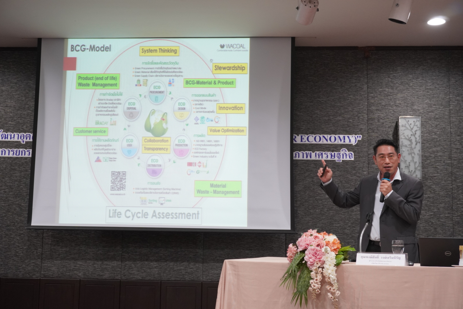 โดยกิจกรรมดังกล่าว จัดขึ้นภายใต้โครงการยกระดับผลิตภาพภาคอุตสาหกรรมอย่างยังยืนด้วยแนวคิด เศรษฐกิจชีวภาพ เศรษฐกิจร และเศรษฐกิจสีเขียว (BCG Model) ปีงบประมาณ 2566 รวม 3 วัน ได้รับเกียรติจากผู้เชี่ยวชาญและผู้ทรงคุณวุฒิในแวดวงการพัฒนาเศรษฐกิจหมุนเวียนมาร่วมบรรยาย วันแรกประกอบไปด้วย