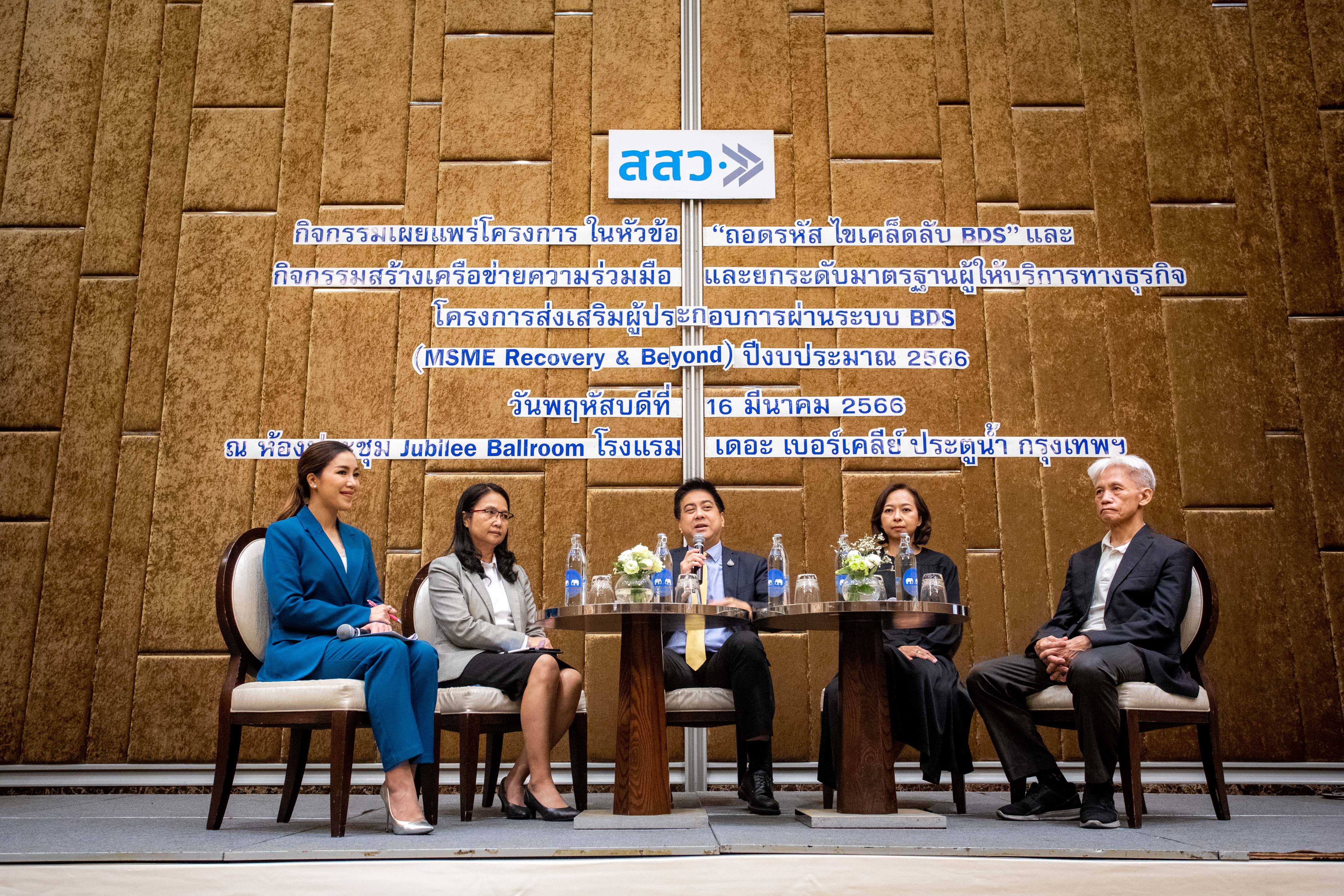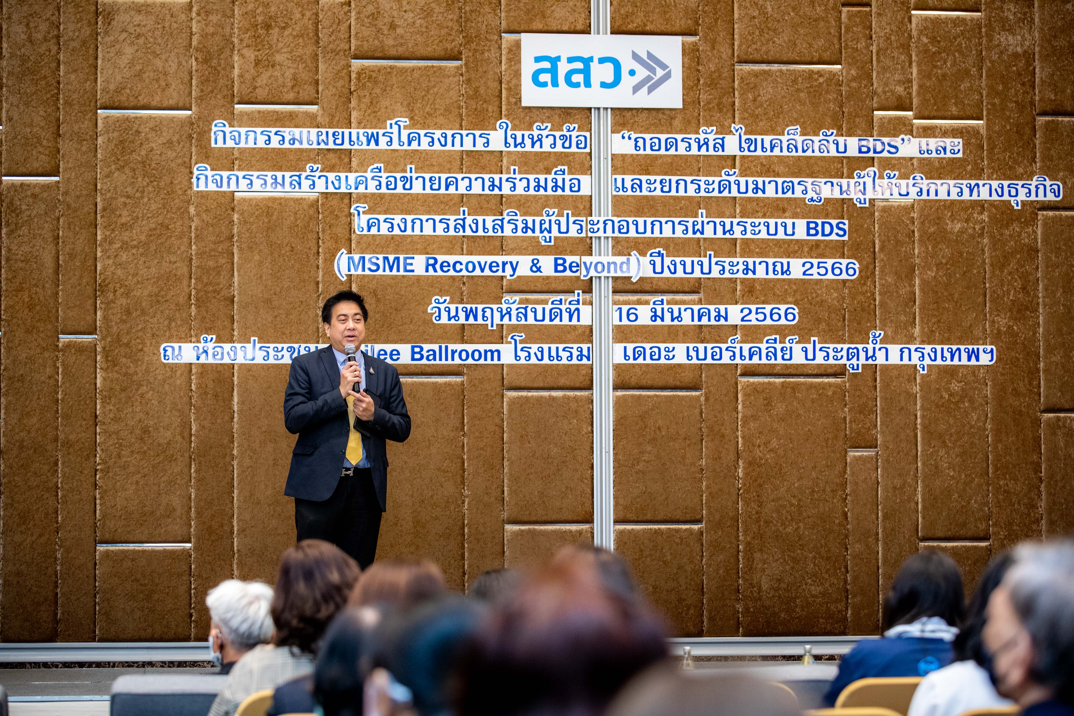 สสว.เดินหน้าพัฒนาผู้ประกอบการ จัดเสวนา “ถอดรหัส ไขเคล็ดลับ BDS : SME ปังตังได้คืน ก้าวสู่ปีที่ 2”ภายใต้โครงการส่งเสริมผู้ประกอบการผ่านระบบ BDS ปีงบประมาณ 2566 มุ่งพัฒนา ช่วยเหลือ ผู้ประกอบการผ่านแคมเปญ “ถอดรหัส ไขเคล็ดลับ BDS”พร้อมอุดหนุนค่าใช้จ่ายในการพัฒนาเอสเอ็มอี แบบร่วมจ่าย (Co-payment)ในสัดส่วนร้อยละ 50-80วงเงินสูงสุดถึง 200,000 บาท